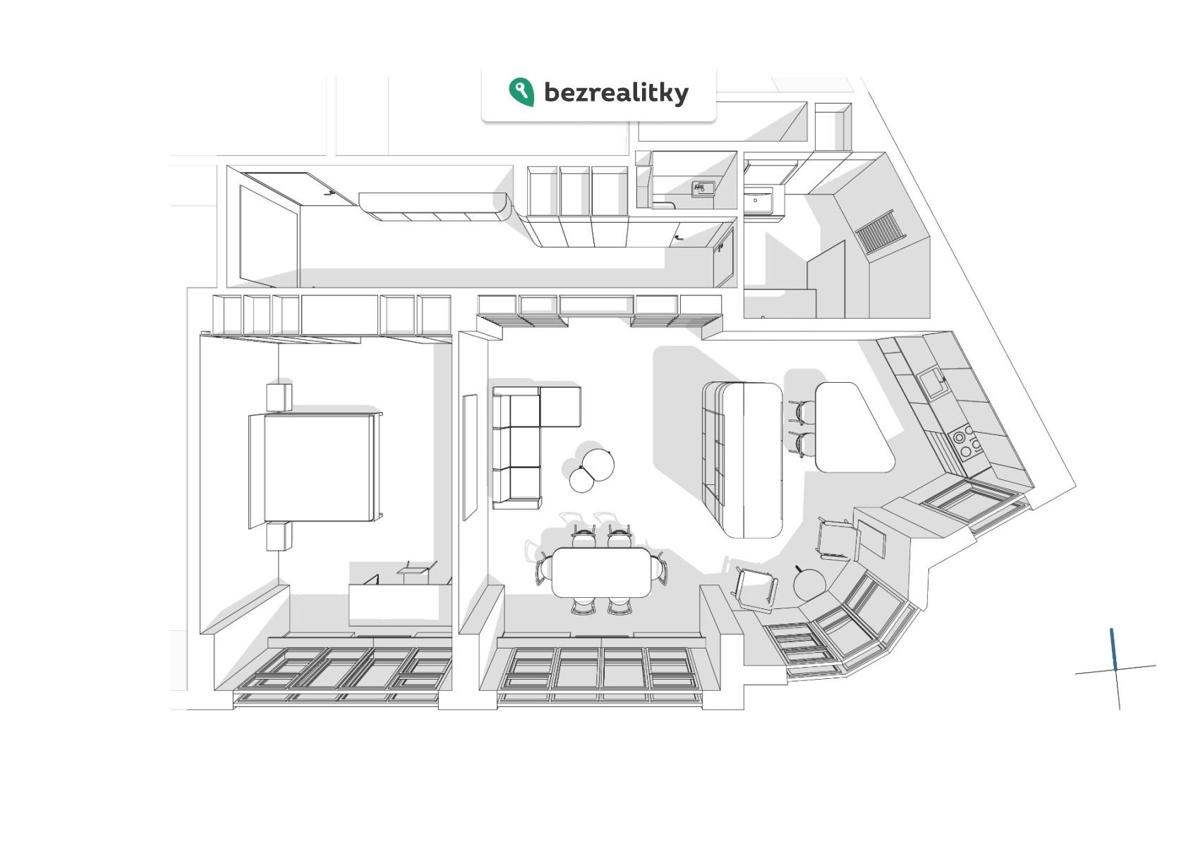 K dispozici je podrobná projektová dokumentace na veškerý vestavný nábytek, vč. kuchyně.