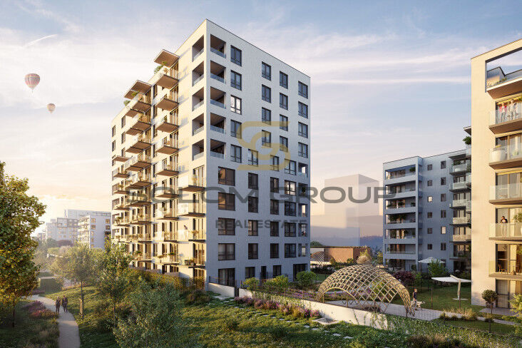 Prodej nového bytu 2+kk o velikosti 44,5 m² + lodžie 4,5 m², který se nachází v 9. patře cihlové novostavby v rezidenci Harfa Park (dům S).