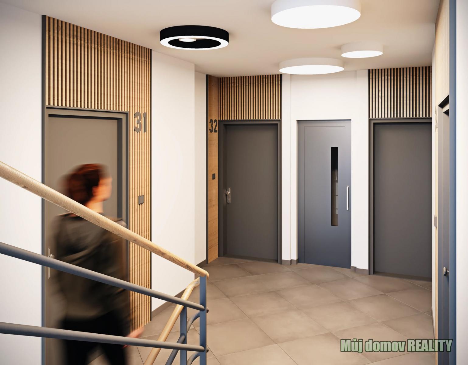 * kvalitně zpracované společné prostory s keramickou dlažbou a dřevěnými prvky