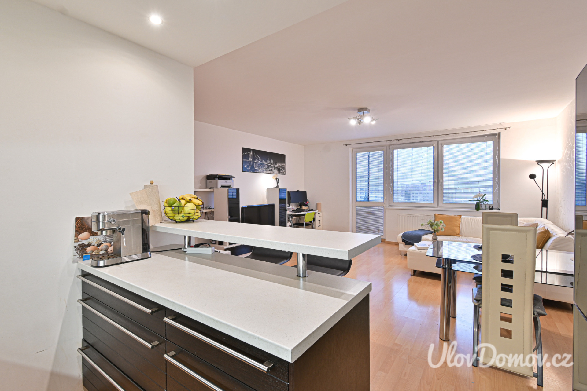 Ve výhradním zastoupení majitele nabízíme ke koupi byt 2+kk v osobním vlastnictví, který disponuje podlahovou plochou 61 m². Přísluší k němu prostorný balkón o výměře 13 m2, garážové parkovací stání a sklepní kóje o výměře 1,35 m2. Velkou výhodou nemovitosti je komora/šatna přímo v bytě, která nabízí nadstandardní úložný prostor o výměře 3 m2. Byt se nachází v 5. nadzemním podlaží bytového domu, který je součástí projektu Milíčovský háj z roku 2009 (developer Skanska).