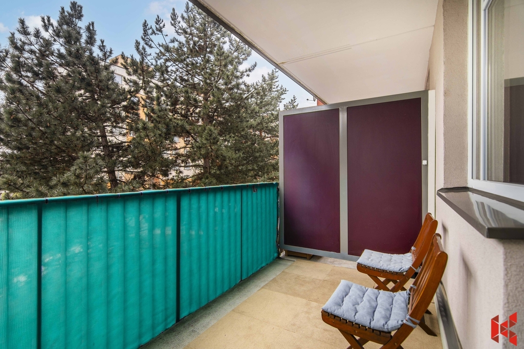 ✔ balkon přístupný z obývacího pokoje (+ dalších 6,54m²),