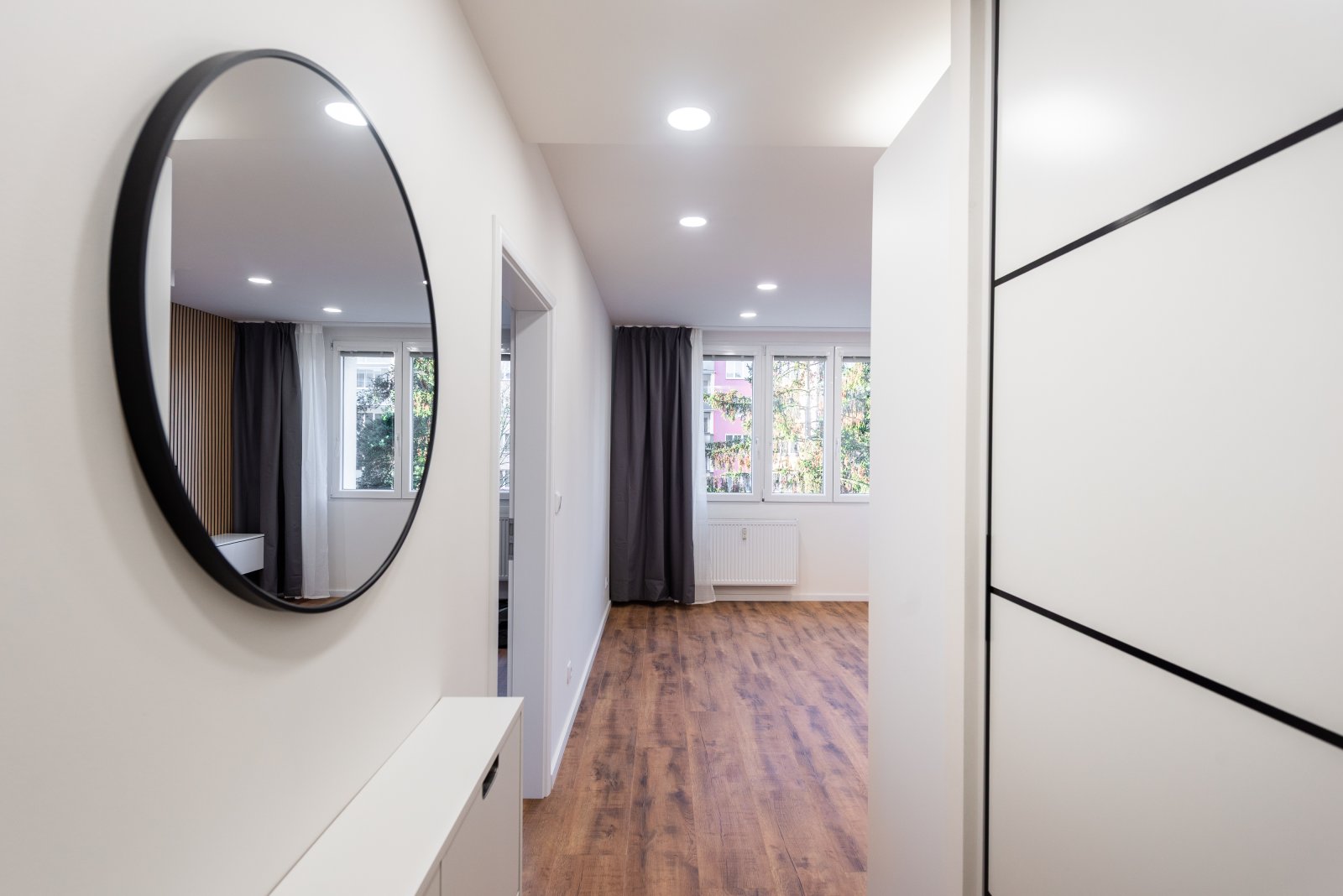 Byt je po kompletní, velmi nadstandardní, rekonstrukci, dotažené do detailu a nebyl po zmíněné rekonstrukci doposavad bydlen. Byt tvoří dvě prostorné místnosti - obývací pokoj s kuchyňským koutem (18m2) a ložnice (19m2).