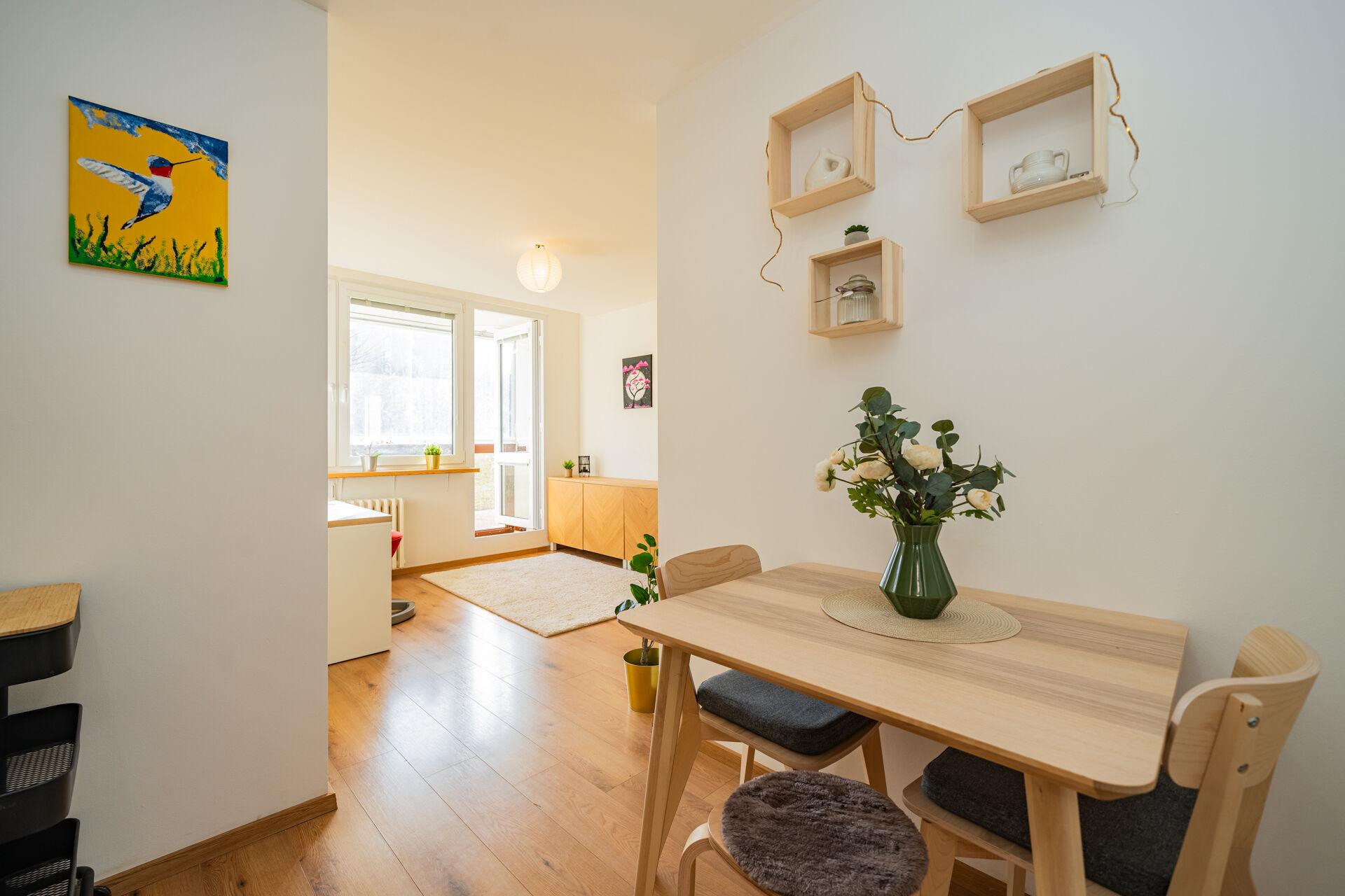 Byt je ve skvělé lokalitě Bohnic. Kompletní síť obchodů a služeb. Je až překvapující, že jedna lokalita snoubí tolik možností využití a zázemí. Jsou zde školy, školky, dostatek obchodů, centrum Krakov, příroda, restaurace, botanická zahrada, blízkost zoo. Autobus je pouhou minutu od domu a za dalších deset minut jste na metru C.