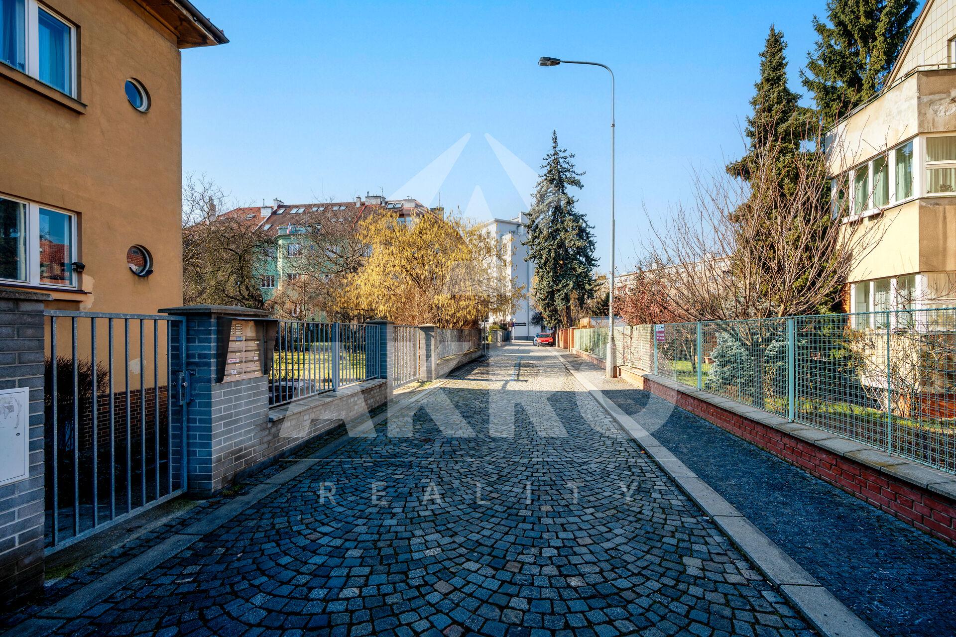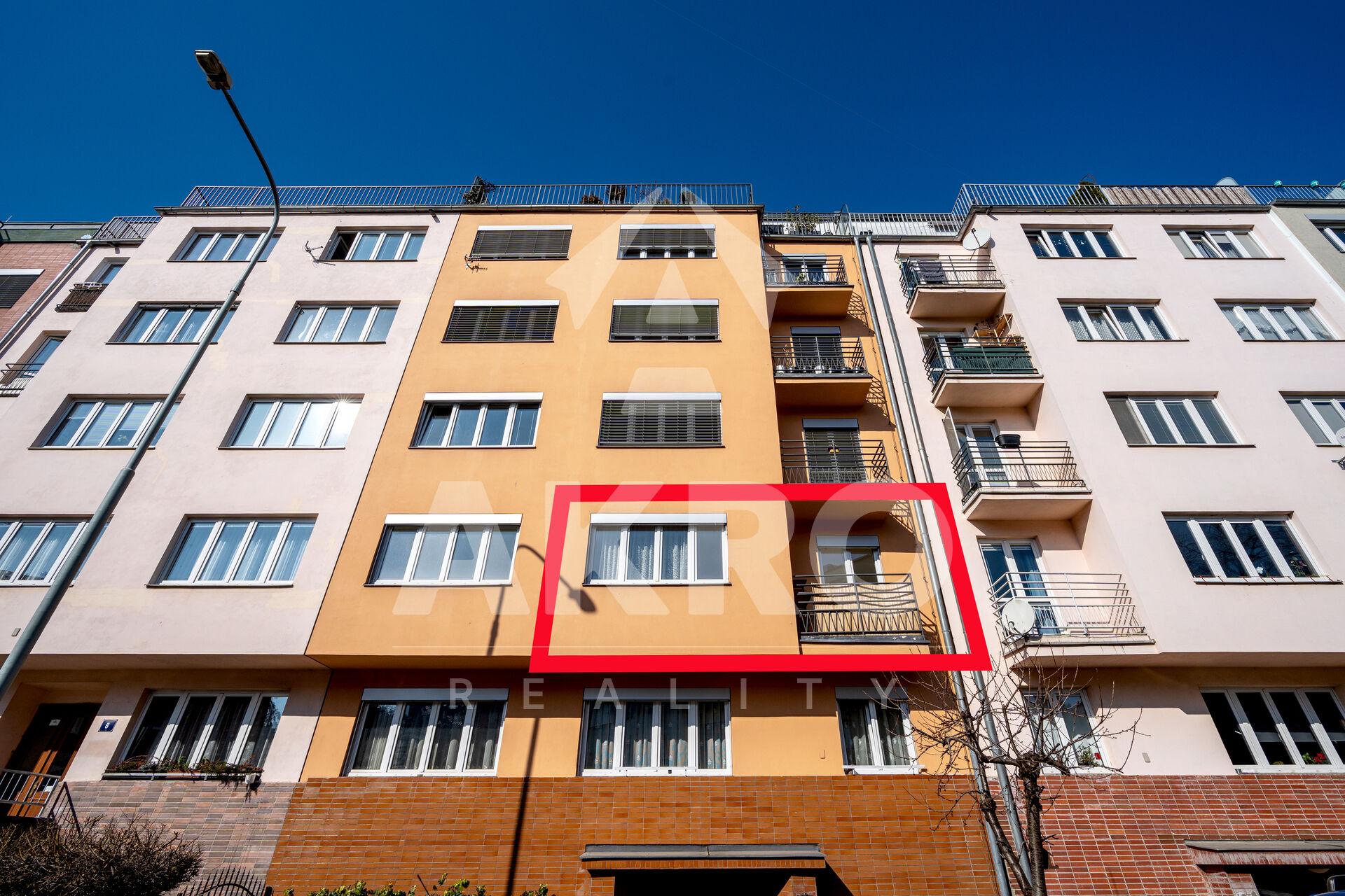 V rezidenční lokalitě Prahy 6 - Střešovice, ve 3. NP s výtahem, v šestipatrovém cihlovém domě, kde vstup je bezbarierový. Dům i byt byly v posledních 15 letech průběžně rekonstruovány: fasáda, stoupačky, vytápění, plastová okna, výtah, společné prostory, venkovní žaluzie na všech oknech. Dispozice bytu: vstupní chodba, kde je kuchyňská linka s lednicí a pračkou, koupelna s rohovou vanou a umyvadlem, samostatná toaleta s umyvadlem, prostorný obývací pokoj a ložnice s plovoucí podlahou, balkon a sklep. Do všech místností a pokojů jsou samostatné vstupy. Byt má zděné jádro s užitnou plochou 49m², vytápění je ústřední (plynový kotel). Orientace oken je na jih s výhledem do klidné ulice s možností parkování. V bytě je zaveden internet. V domě je možné využívat kočárkárnu. Řadové domy byly postaveny v letech 1940 až 1947 pro zaměstnance ministerstva obrany, je zde i kryt.