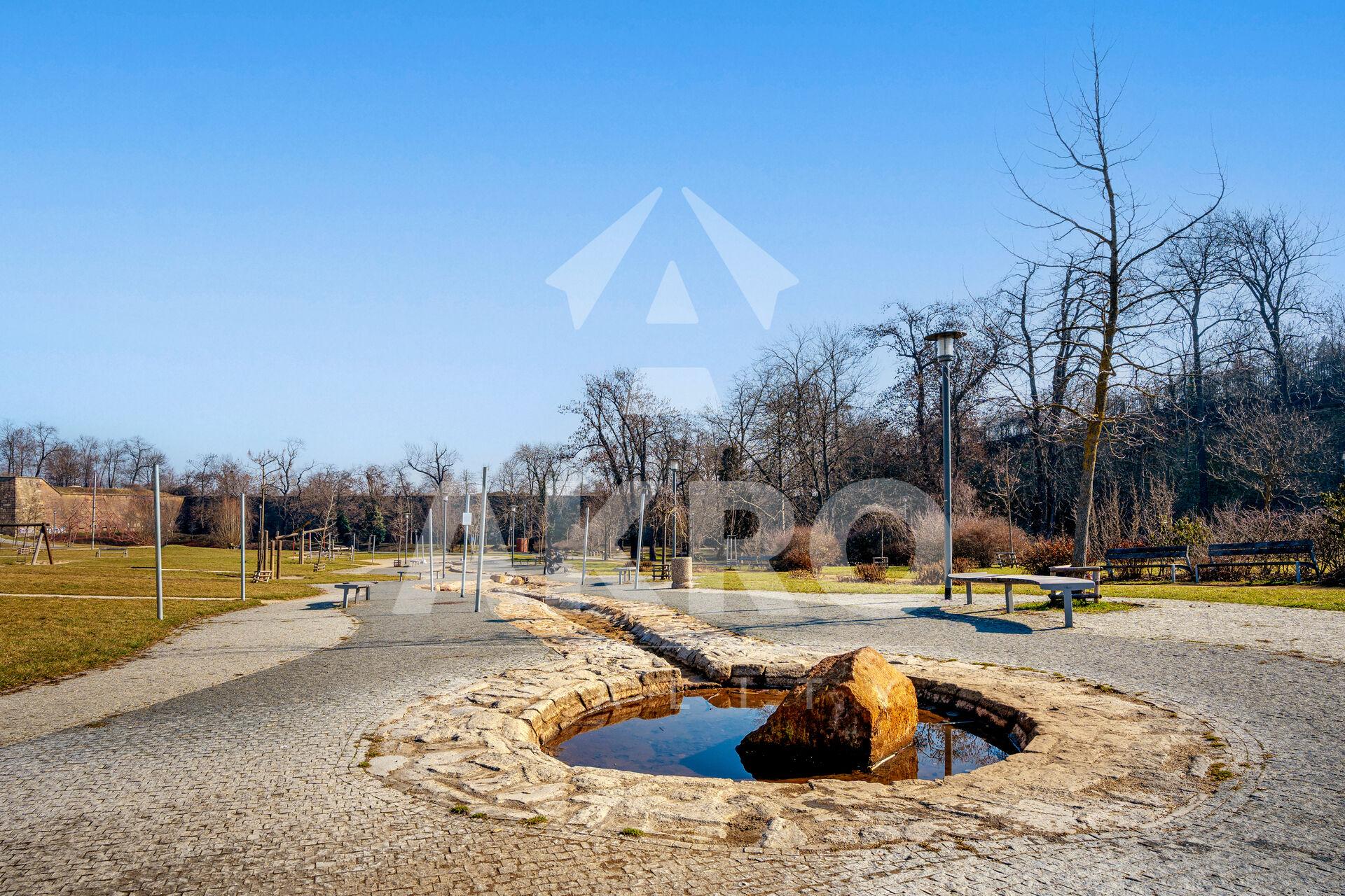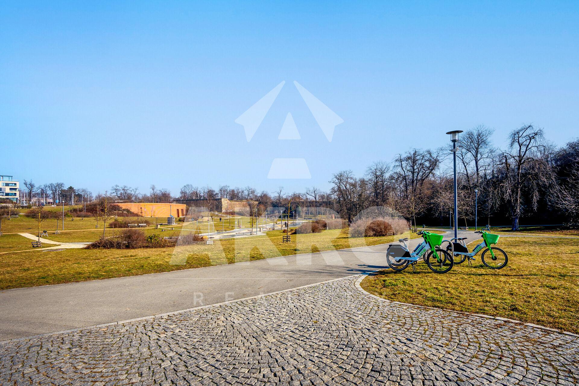 Veškerá občanská vybavenost je v místě, nejblíže na Bělohorské ulici. Obchody 400m, škola a školka 500m, poliklinika Marjánka, pobočka Městské knihovny, tenisové kurty. Výborná dostupnost do centra města. Na tramvajovou zastávku Park Maxe van der Stoehla je pěšky 150 metrů, odkud jezdí tramvaje a autobusy ve dne i v noci. 8 minut na metro Hradčanská, dále na Letnou, na Strahov, na Smíchov, na Bílou horu (supermarket Kaufland). Taxi na letiště Vás doveze za 18 minut. V docházkové vzdálenosti je Pražský hrad i Petřínské sady. 5 minut chůze je na zrekonstruované koupaliště Petynka event. 15 minut do hotelu Pyramida s bazénem a Relax centrem.