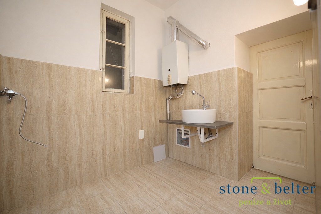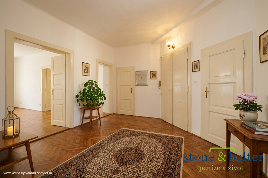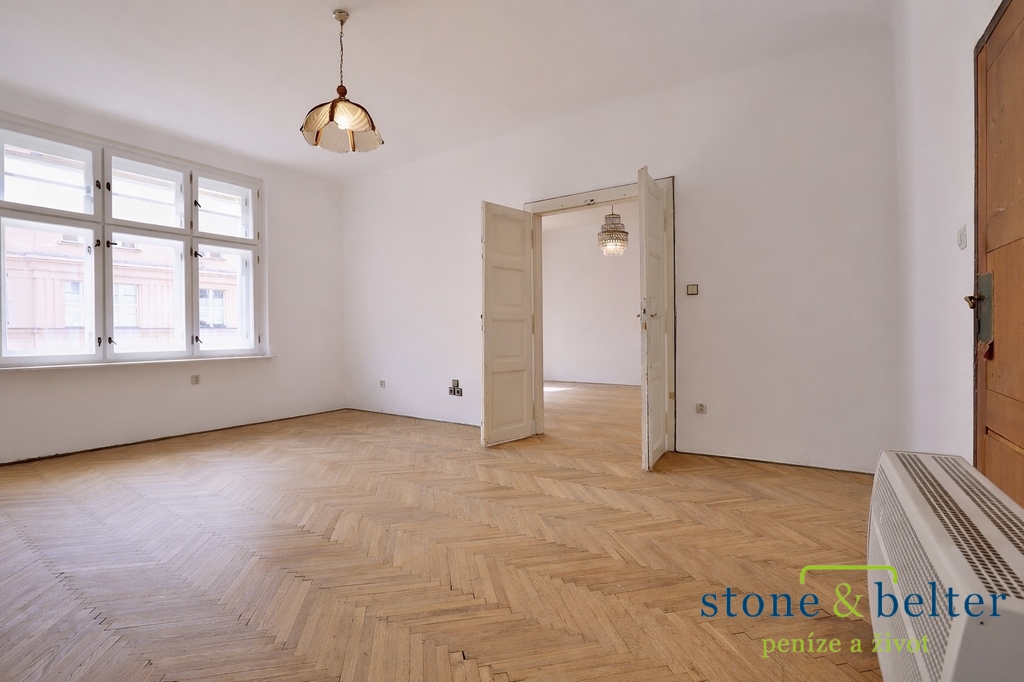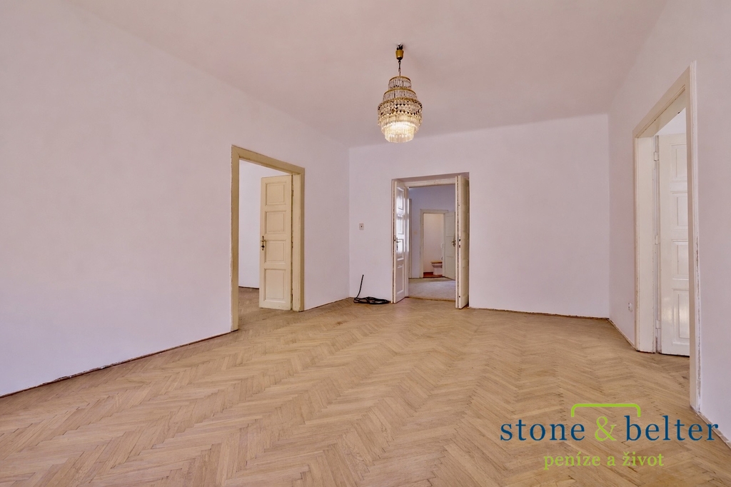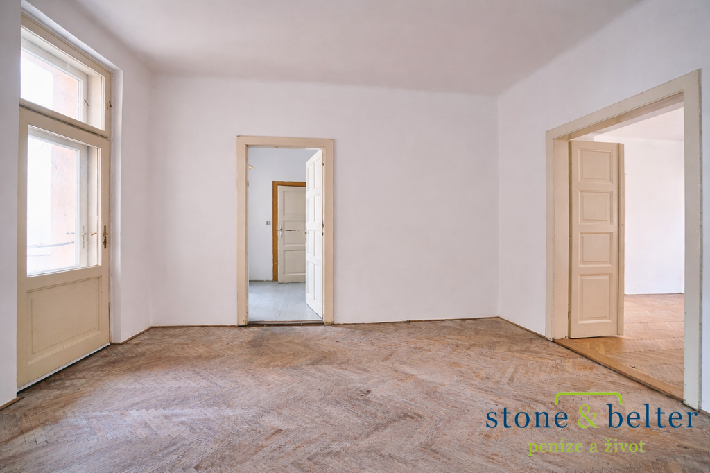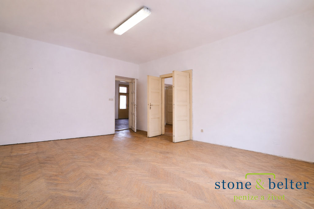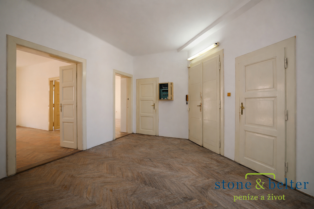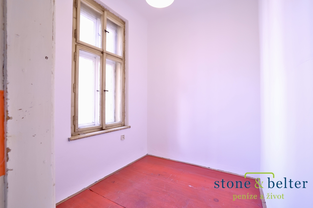 Bonusem je nadstandardně velká vstupní místnost (17,2 m²), kterou je možné přebudovat k různému využití. Byt vyžaduje kompletní rekonstrukci (vyjma oken směřujících do ulice) a náleží k němu sklep (3,8 m²).