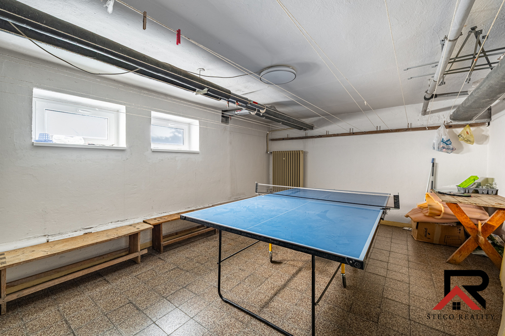 Společné prostory domu zahrnují místnost se stolním tenisem a posilovnu.