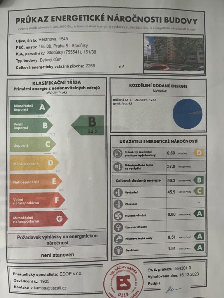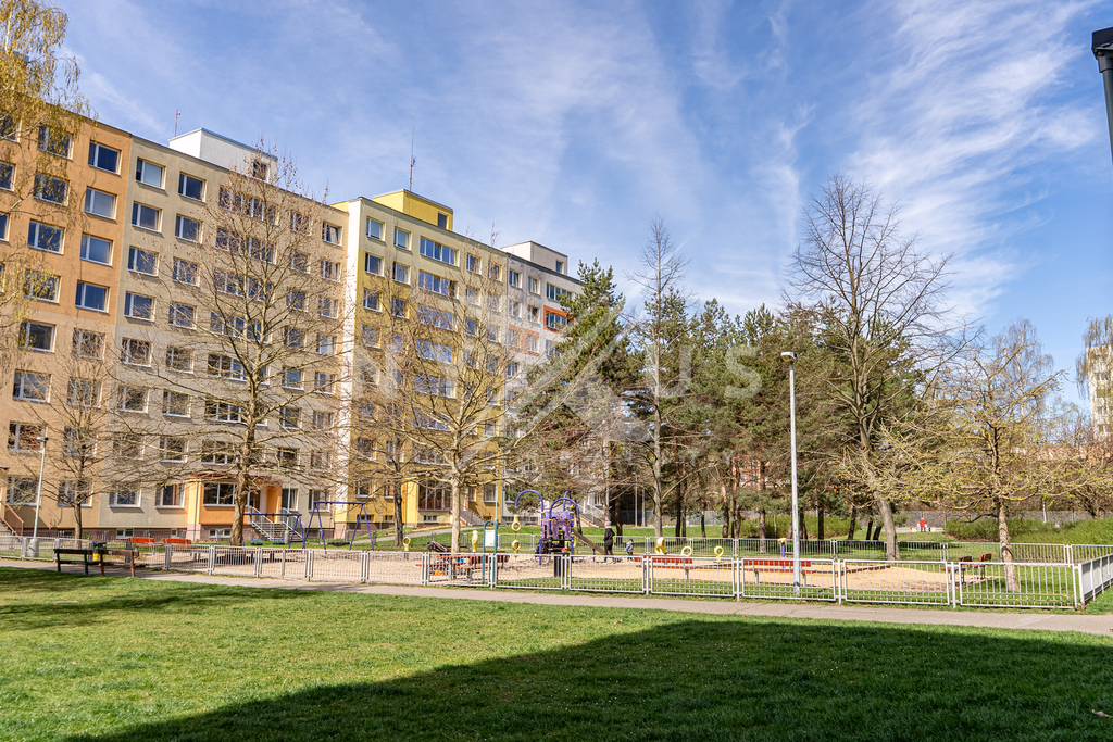 Rodinný byt 3 + 1 70 m², s lodžií 7 m² a sklepem 1,5 m² leží v 2. podlaží zatepleného panelového domu, který je situován u parku se vzrostlými stromy a leží pět minut pěšky od stanice metra Stodůlky.