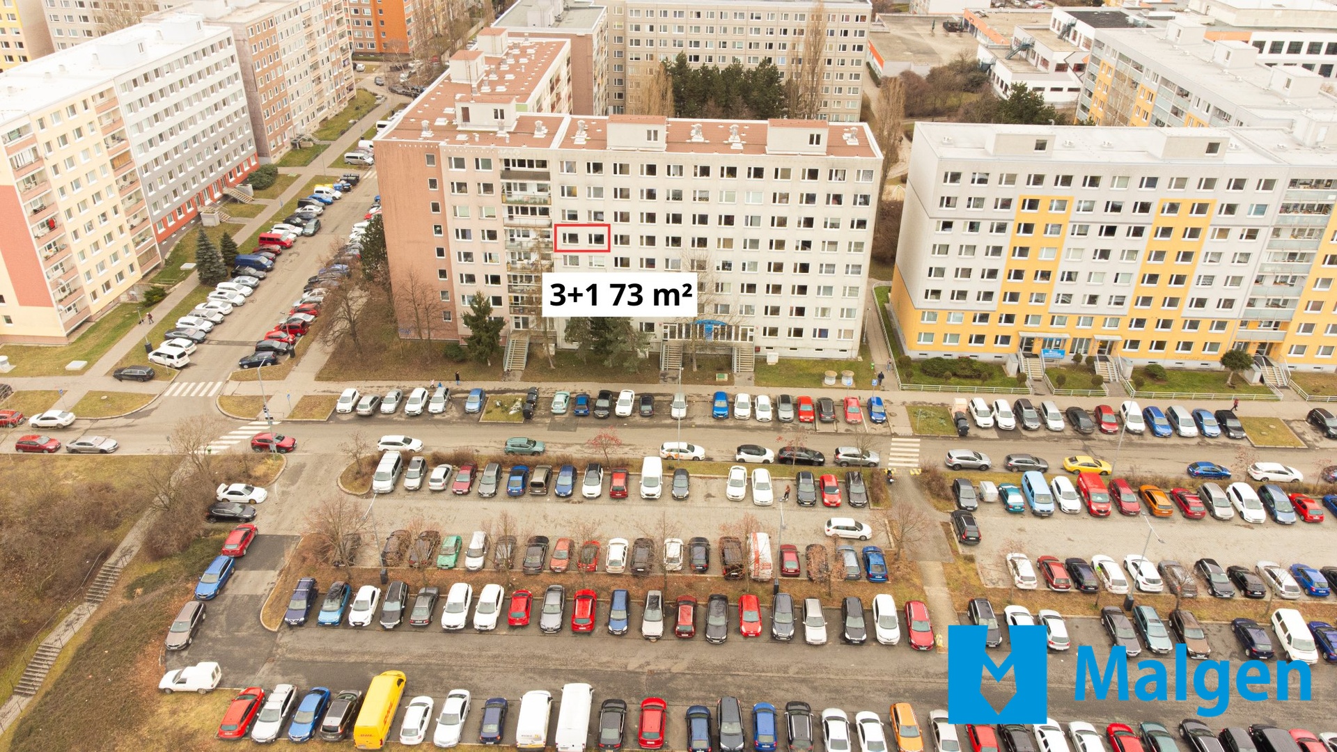 Velkým benefitem je prostorné parkoviště přímo před domem, kde lze parkovat zdarma a bez omezení.