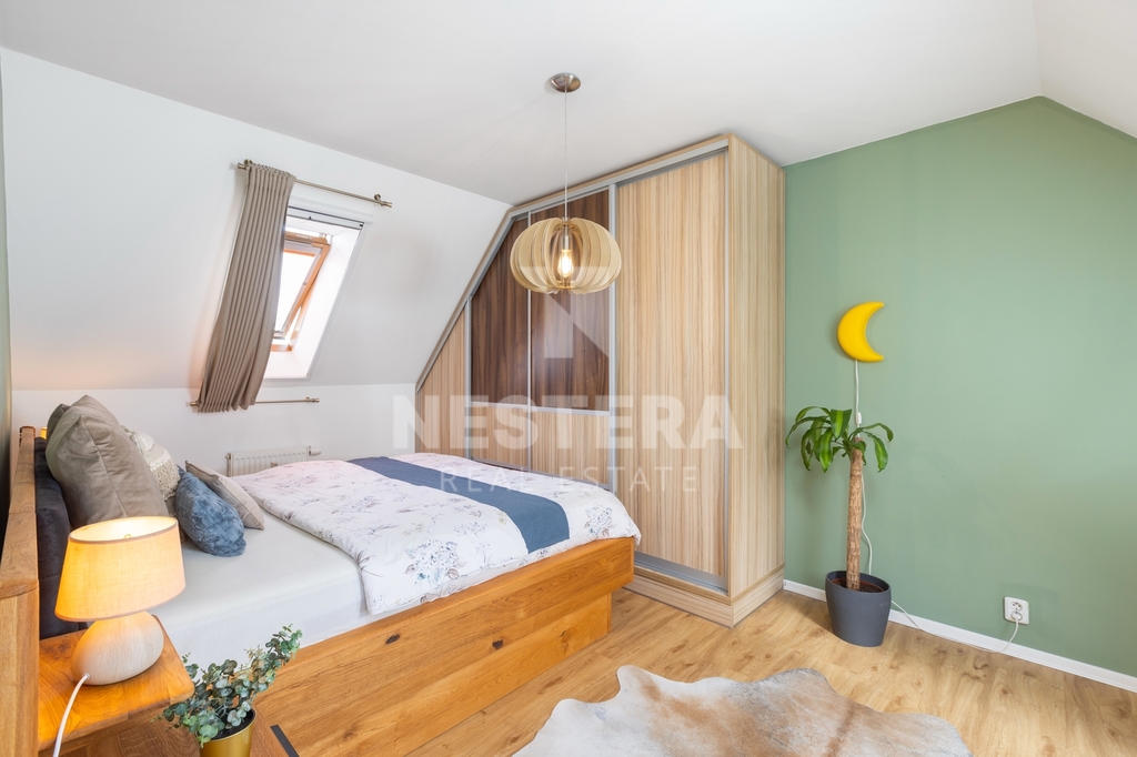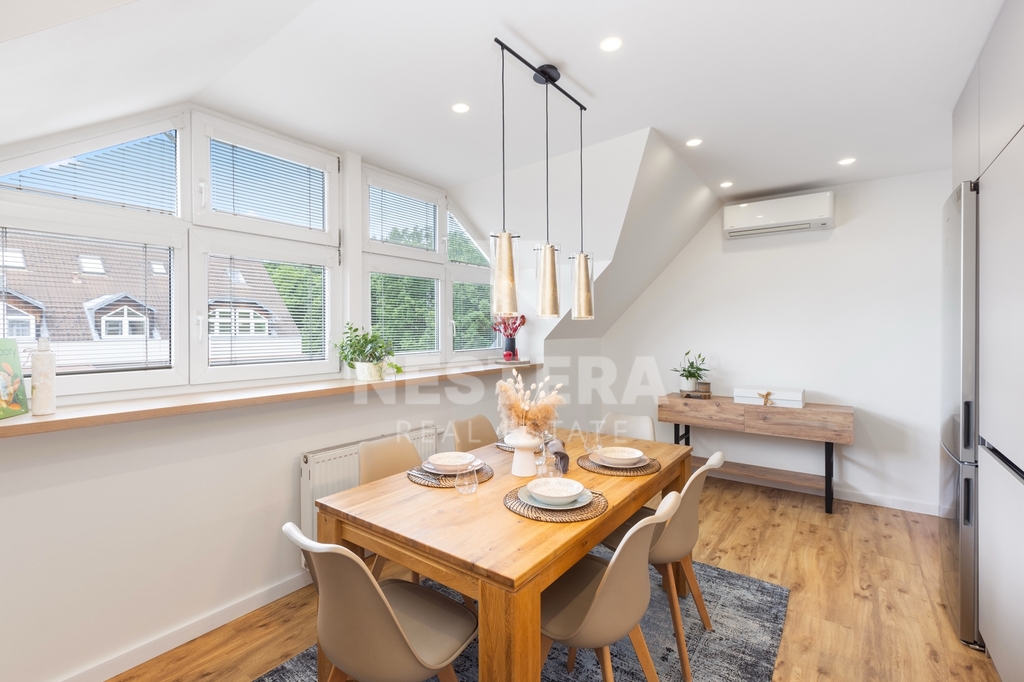 Nabízíme k prodeji prostorný byt s dispozicí 3+1 a celkové ploše 96 m², který vznikl půdní nástavbou před 20 lety. Byt se nachází ve velmi žádané lokalitě Praha 9 – Újezd nad Lesy, na dosah dvou přírodních parků – Škvorecká obora – Králičina a Klánovice-Čihadla. Do přírody to máte doslova pár kroků.