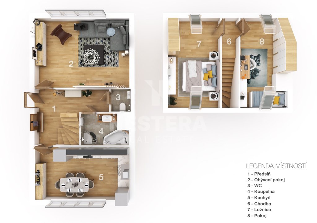 • Většina nábytku je vestavěná a součástí prodeje - kvalitní volně stojící nábytek je možné dle dohody odkoupit