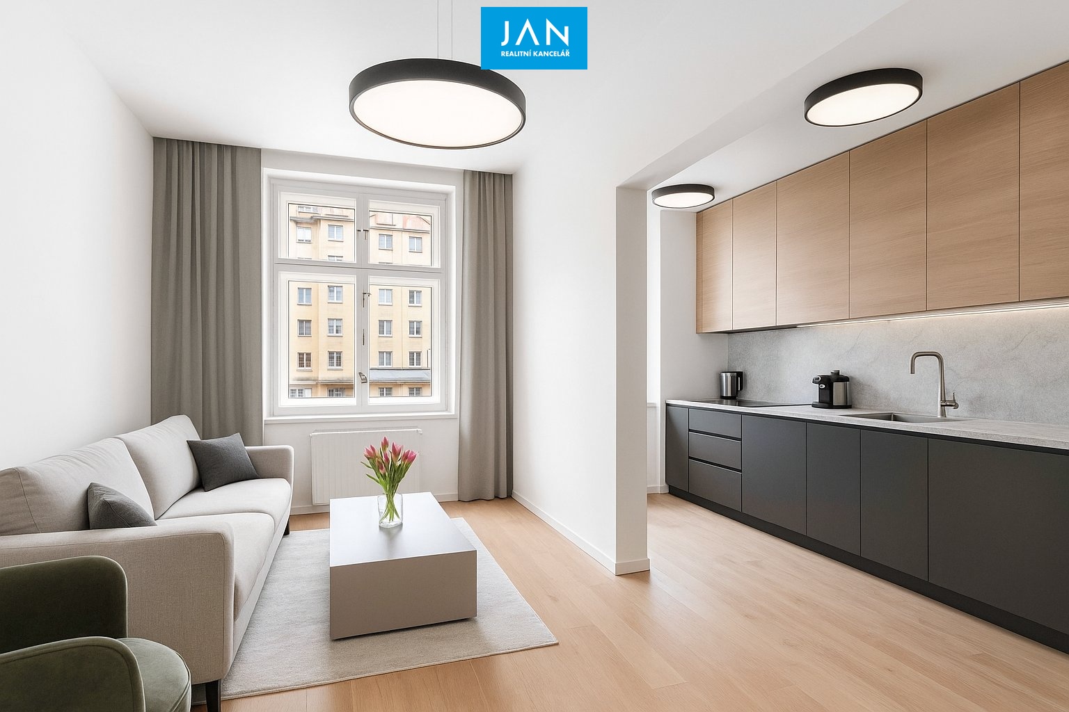 • možnost vytvořit moderní obývací pokoj s kuchyňským koutem a změnit byt na 4+kk,