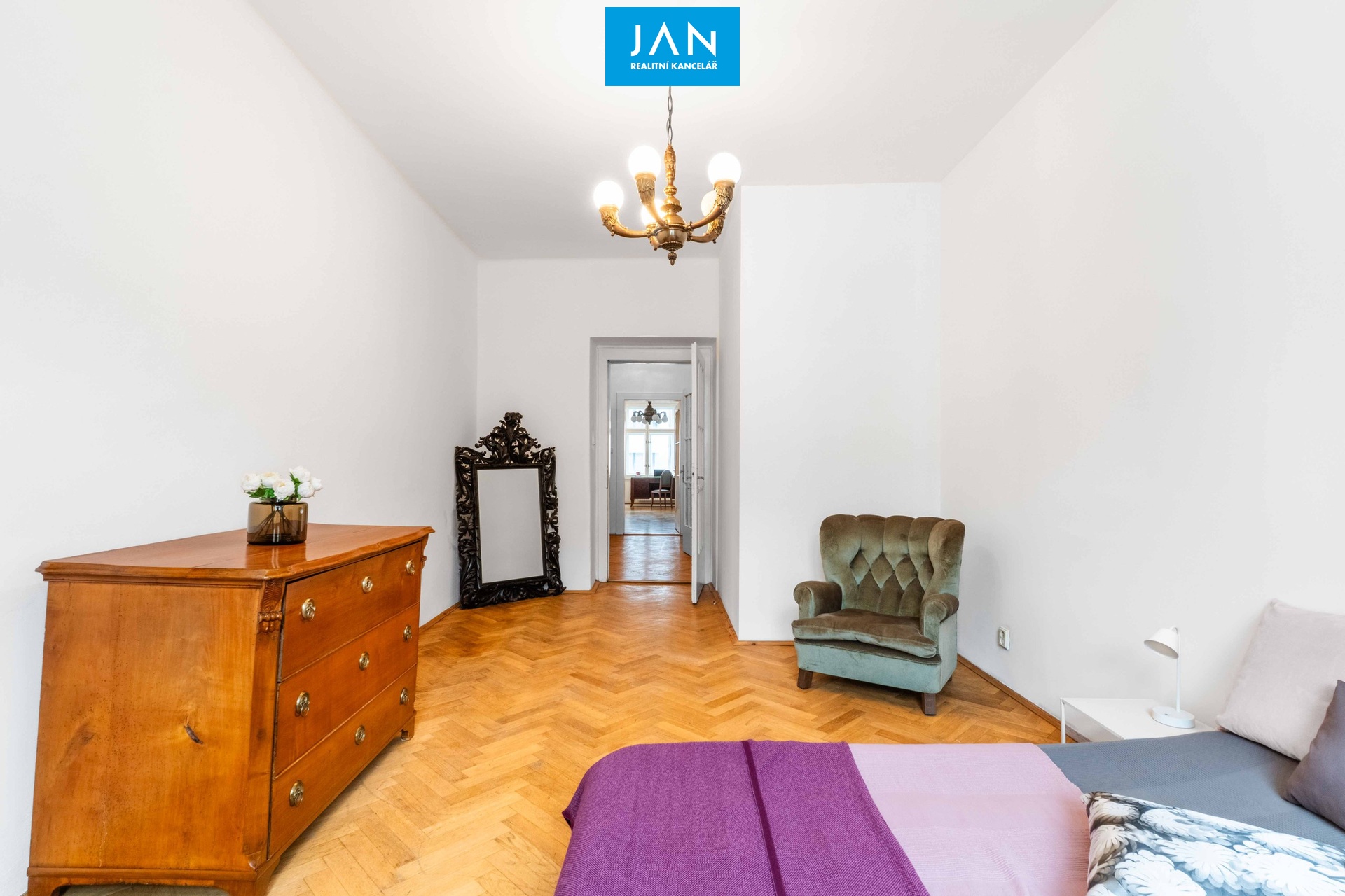 Byt po rekonstrukci z 90. let je ideální pro ty, kteří chtějí zachovat původní elegantní prvky a zároveň si byt upravit dle svého. Pro inspiraci jsou mezi fotografiemi uvedeny také vizualizace možných úprav. Původní dřevěné parkety dodávají interiéru noblesu, elektroinstalace v mědi zase jistotu moderního standardu.