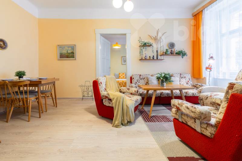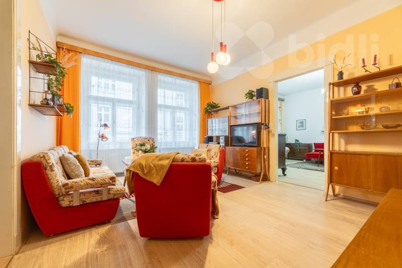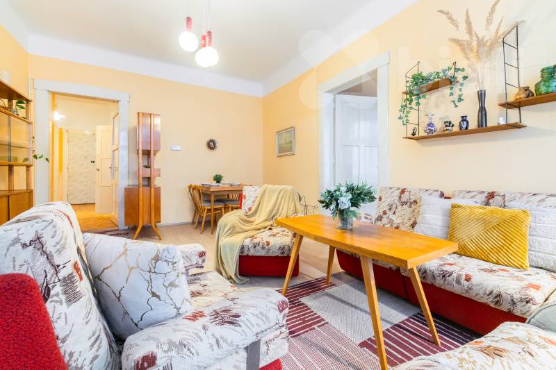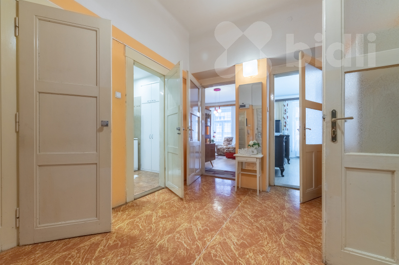 Byt nabízí tři velké a světlé pokoje orientované na západ, které poskytují dostatek prostoru jak pro rodinné bydlení, tak pro reprezentativní využití. Samostatná kuchyně orientovaná na východ umožňuje pohodlné vaření i stolování. Dispozici dále doplňuje prostorná vstupní hala, koupelna, oddělené WC, spíž a praktická komora.