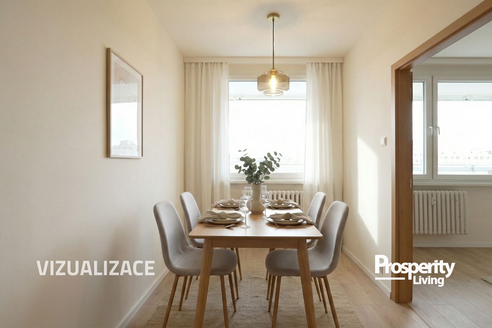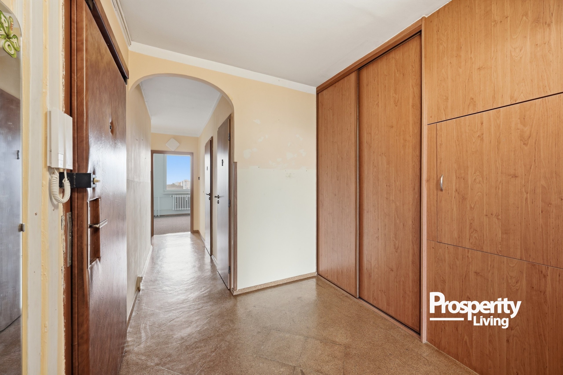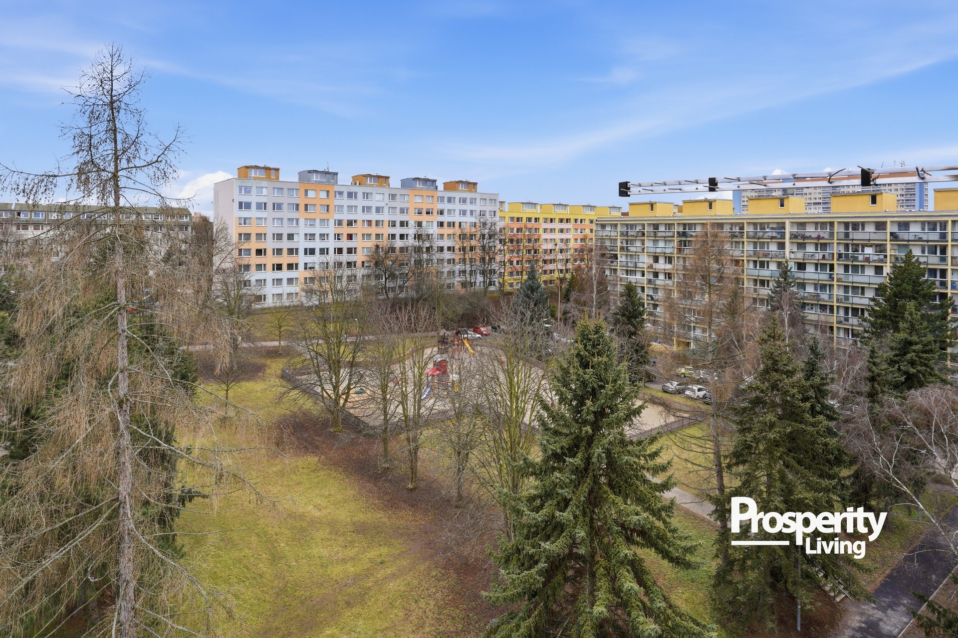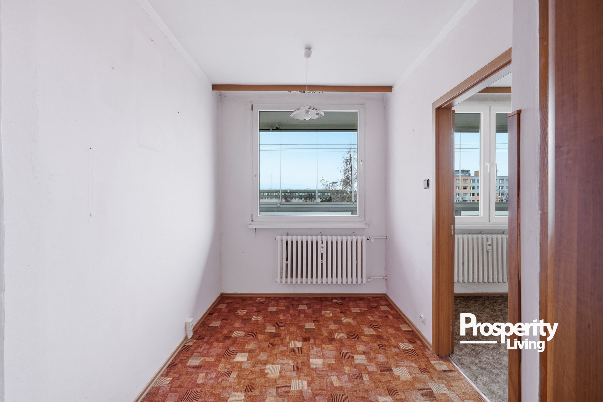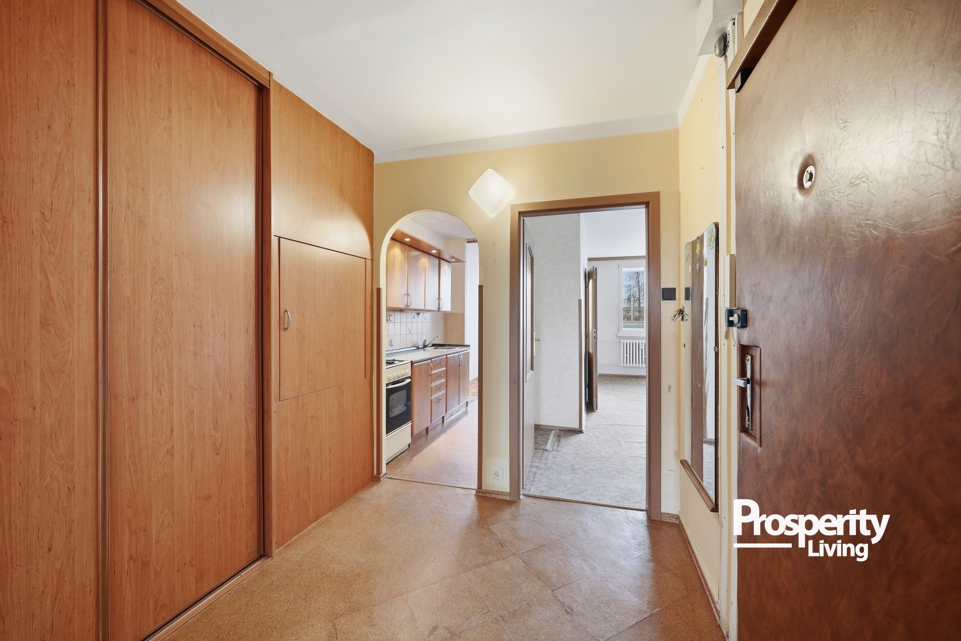 Kombinace zeleně, klidného prostředí a skvělé dopravní dostupnosti dává tomuto bytu to nejdůležitější – potenciál stát se skutečným rodinným domovem na mnoho let.