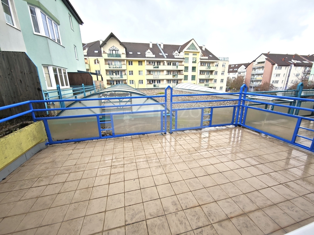 Velkou výhodou tohoto bytu je již zmiňovaná terasa, která je ohraničena zábradlím, je zde položena dlažba a vstup na terasu je z obývacího pokoje. Výhodou terasy je její umístění směrem do vnitrobloku a tudíž při pěkném počasí můžete terasu plnohodnotně využít k rekreaci, grilování a dalším aktivitám, aniž by jste byli rušeni. Ještě větší soukromí na terase si můžete zajistit případným slunečníkem.