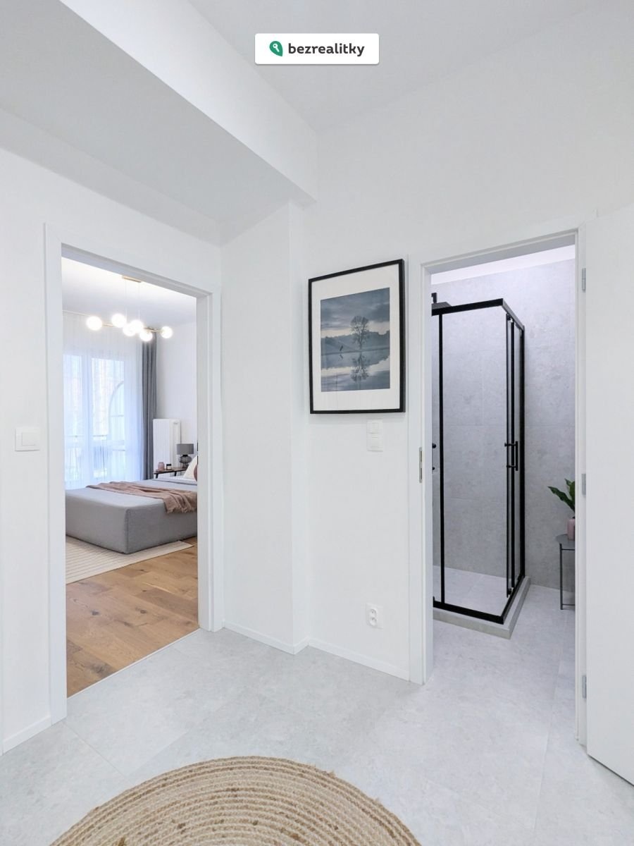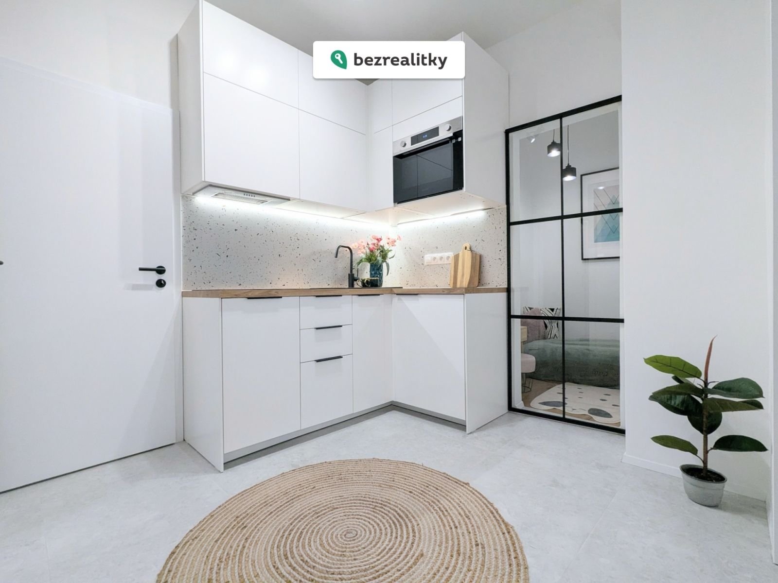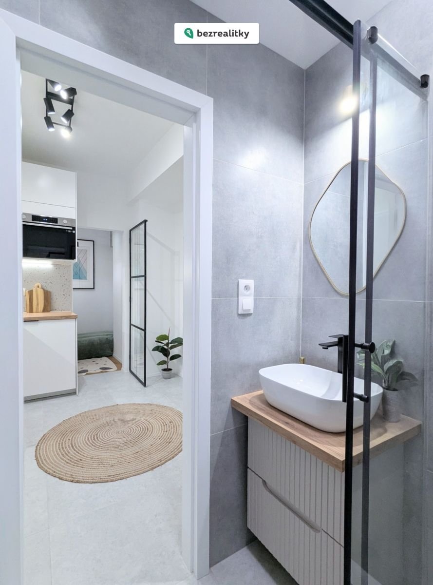 Byt prošel rozsáhlou rekonstrukcí a je rozdělen na praktické zóny – velký obývací pokoj, ložnici s balkonem a šatnou, kuchyni, malý dětský pokoj nebo pracovnu.