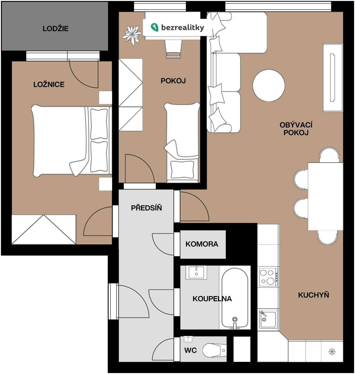 K prodeji nabízíme pronajatou investiční bytovou jednotku o dispozici 3+kk s užitnou plochou 61,6 m², umístěnou ve 3. nadzemním podlaží z celkových 8 podlaží domu s výtahem a bezbariérovým přístupem. K jednotce náleží lodžie a sklepní kóje. Byt je aktuálně dlouhodobě pronajatý stabilnímu nájemníkovi na základě nájemní smlouvy na dobu určitou do 1. 2. 2027. Nemovitost je tedy vhodná primárně jako investice s okamžitým výnosem. Pro vlastní bydlení bude k dispozici po ukončení nájemního vztahu nebo po dohodě s nájemníkem.