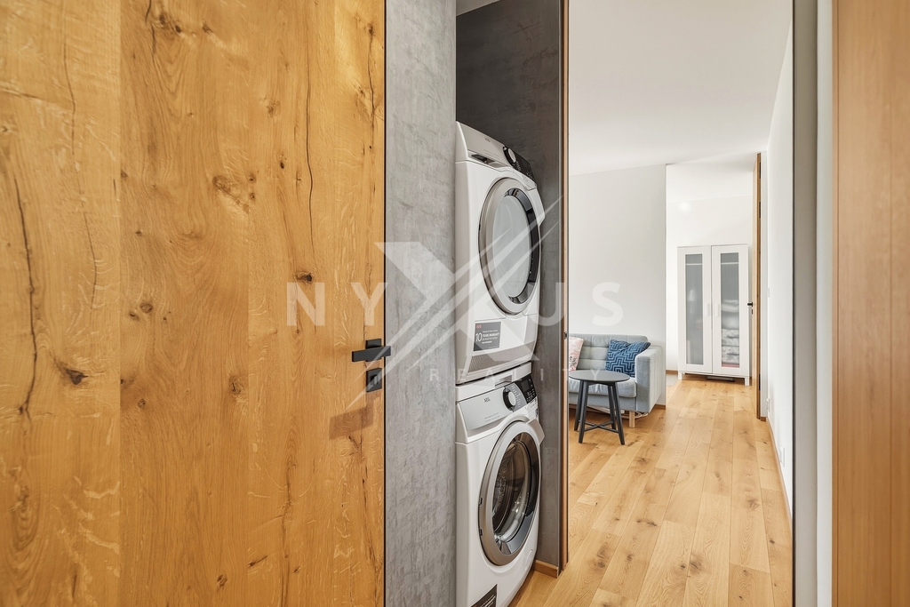 Příjemný dojem podporují i materiály a technické řešení bytu. V obytných místnostech najdete dřevěnou podlahu, kuchyň je vybavena linkou s vestavěnou myčkou, troubou a plynovým sporákem a koupelna se sprchovým koutem je doplněna o samostatné WC, které zvyšuje pohodlí každodenního provozu.