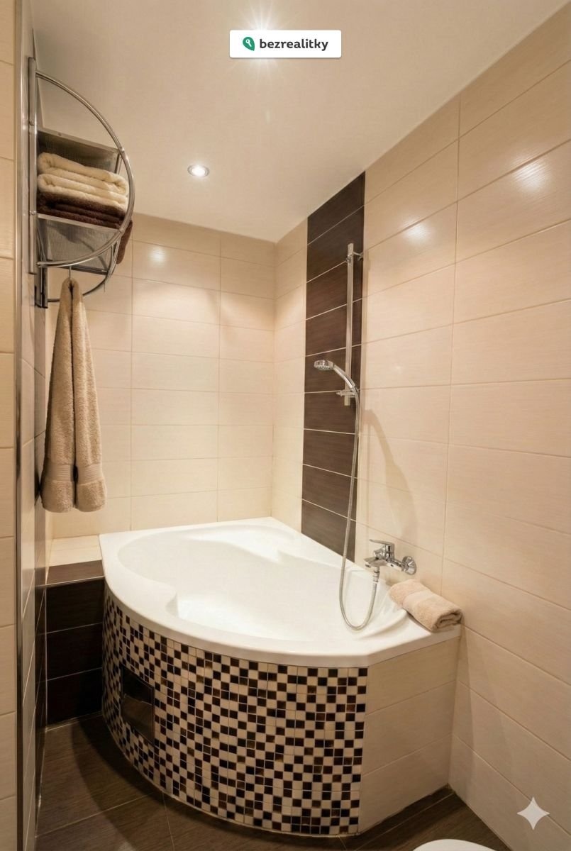Koupelna s rohovou vanou a WC