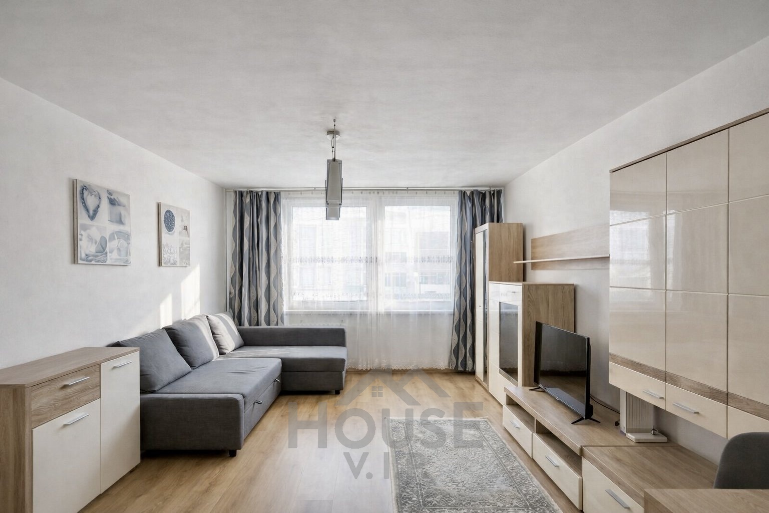 Dispozice nabízí světlý obývací pokoj propojený s krásnou a prostornou kuchyní vyrobenou na míru, která poskytuje dostatek pracovního i úložného prostoru. Otevřený koncept působí vzdušně a vytváří ideální místo pro každodenní rodinný život i setkávání s přáteli. Dále je k dispozici samostatná ložnice orientovaná do klidné části bytu a třetí pokoj aktuálně využívaný jako dětský pokoj, který může sloužit také jako pracovna či pokoj pro hosty. Koupelna je vybavena rohovou vanou a toaletou a nabízí příjemný prostor pro relaxaci.