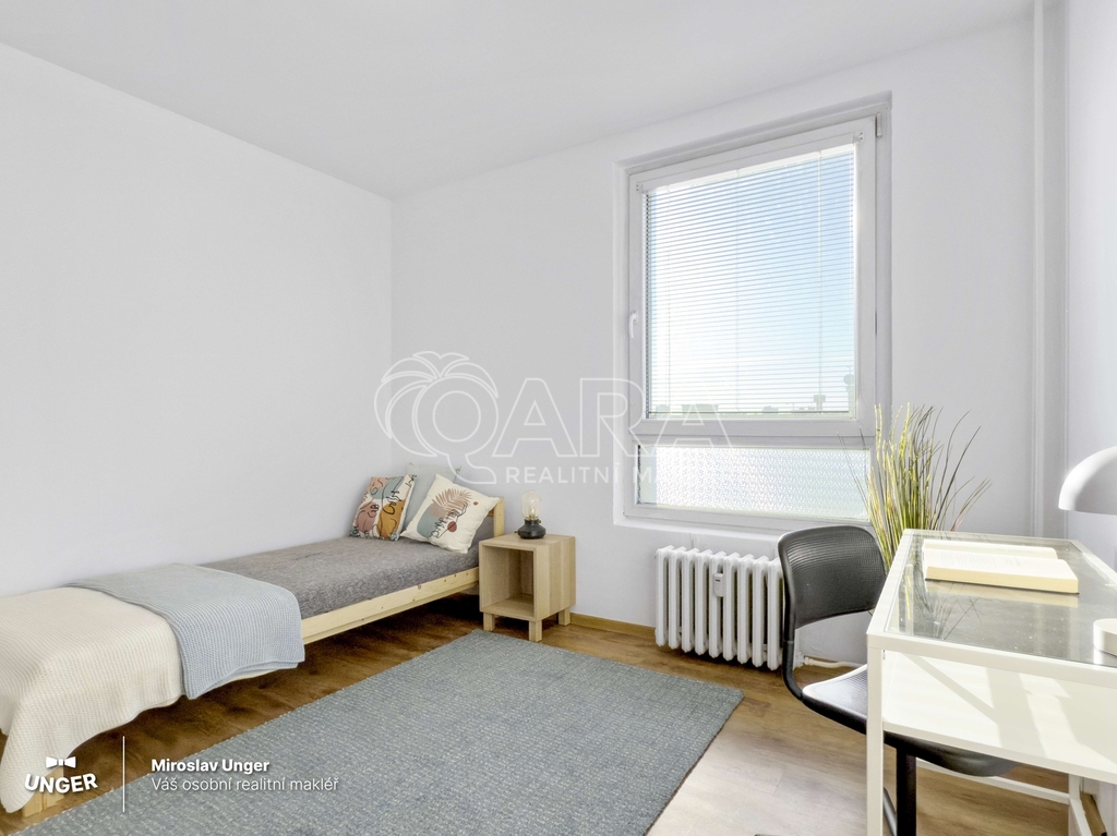 Byt 3+kk o výměře 65 m², který je příjemně světlý, po velkých rekonstrukcích a jeho hlavní předností je výhled do zeleně. Obývací pokoj i ložnice směřují do klidné části bez rušné dopravy, takže vám doma bude opravdu dobře.