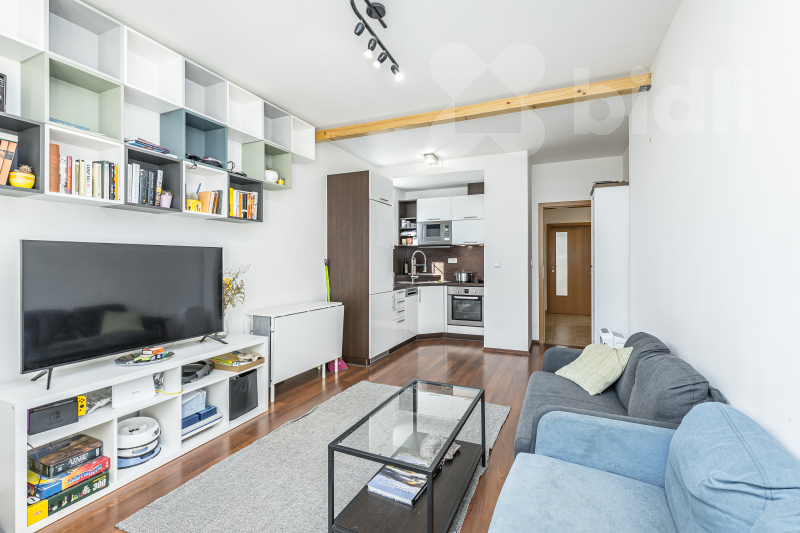 Byt se prodává částečně vybavený a nabízí prakticky řešenou dispozici vhodnou jak pro vlastní bydlení, tak i jako investici. Okna jsou plastová s dvojsklem, což zajišťuje dobré tepelně-izolační vlastnosti. Vytápění a ohřev teplé užitkové vody je zajištěno prostřednictvím centrální výměníkové stanice a teplovodem od Pražské teplárenské. Energetická náročnost budovy je klasifikována třídou C. Součástí jednotky je také nadstandardní parkovací stání ve společných garážích. Velkou výhodou je také prostorný sklep o výměře 9,8 m2, který je prakticky umístěn v 1. podzemním podlaží domu, jen kousek od společných garáží. Samotná předzahrádka je situována nad garážemi, díky čemuž poskytuje větší soukromí a příjemný otevřený prostor.