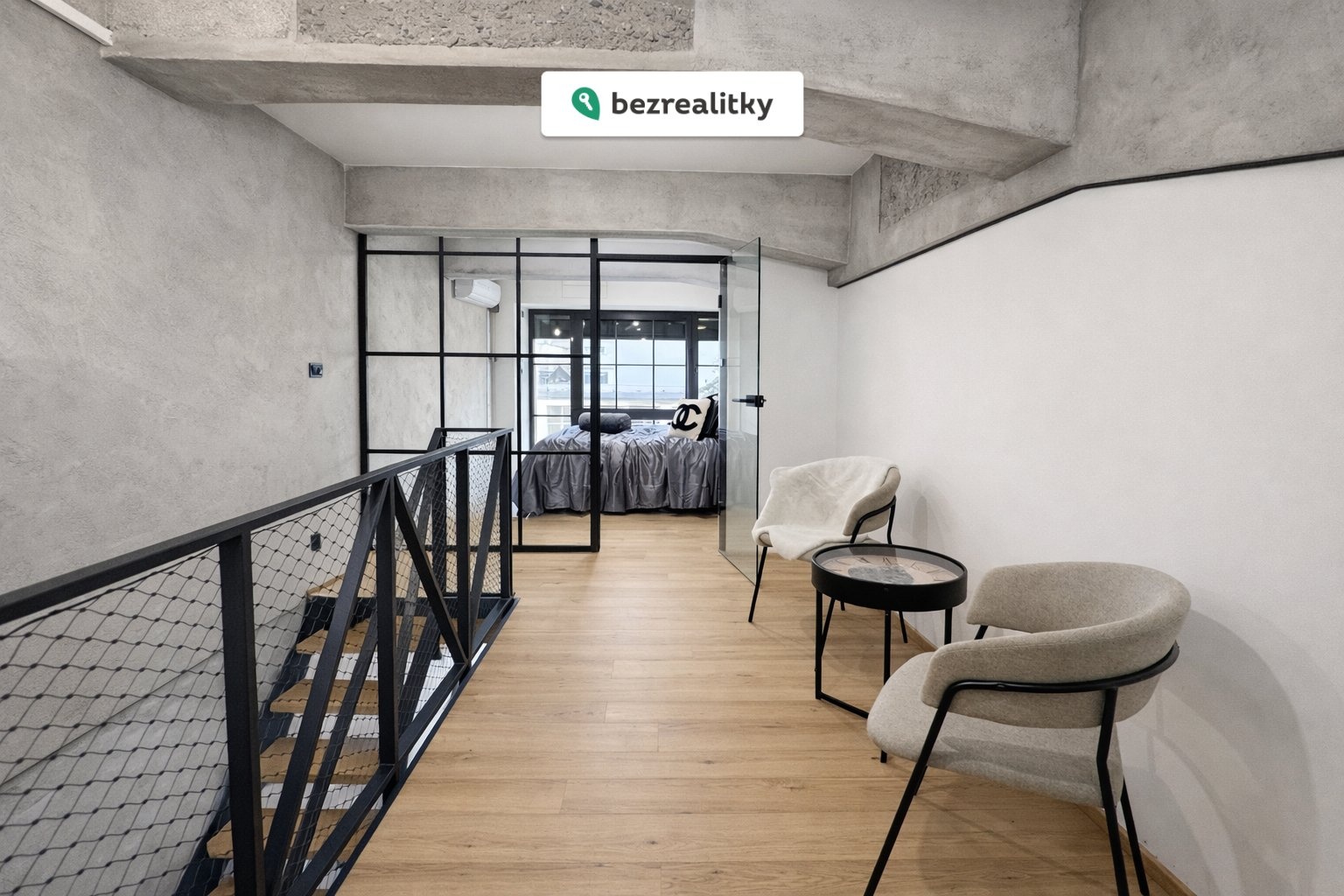 galerie vhodná jako pracovna, relaxační nebo čtecí zóna