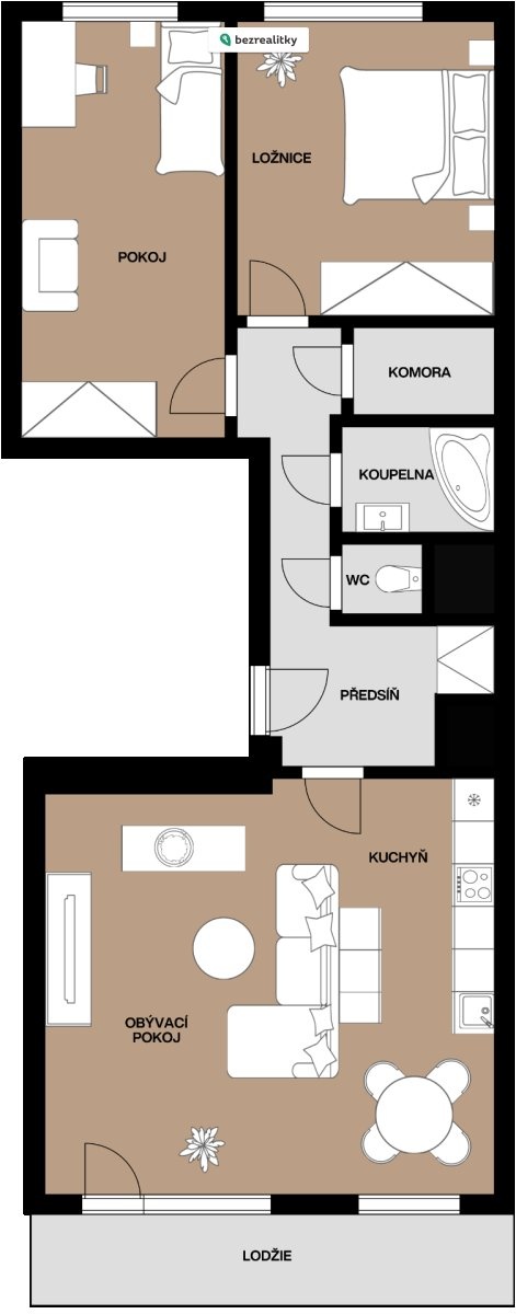 Celková plocha jednotky činí 75,14 m² včetně sklepa. Lodžie není do této plochy započtena a představuje další příjemný prostor pro odpočinek.