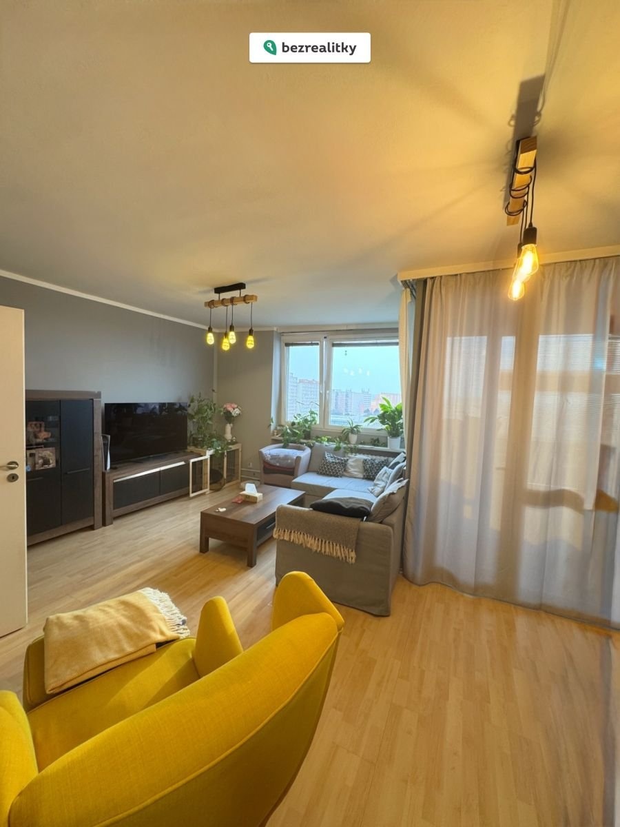 Nabízíme k prodeji velmi světlý a příjemný byt o celkové výměře 72,39 m² v dispozici 3+kk, který se nachází v 10. patře zatepleného bytového domu s velkým výtahem a recepcí. Součástí bytu je také sklep. Umístění ve vyšším patře zajišťuje dostatek klidu, výborné světelné podmínky a krásné výhledy do okolí. Z obývacího pokoje se nabízí nádherný výhled při západu slunce, zatímco oba samostatné pokoje jsou orientovány na východní stranu.
