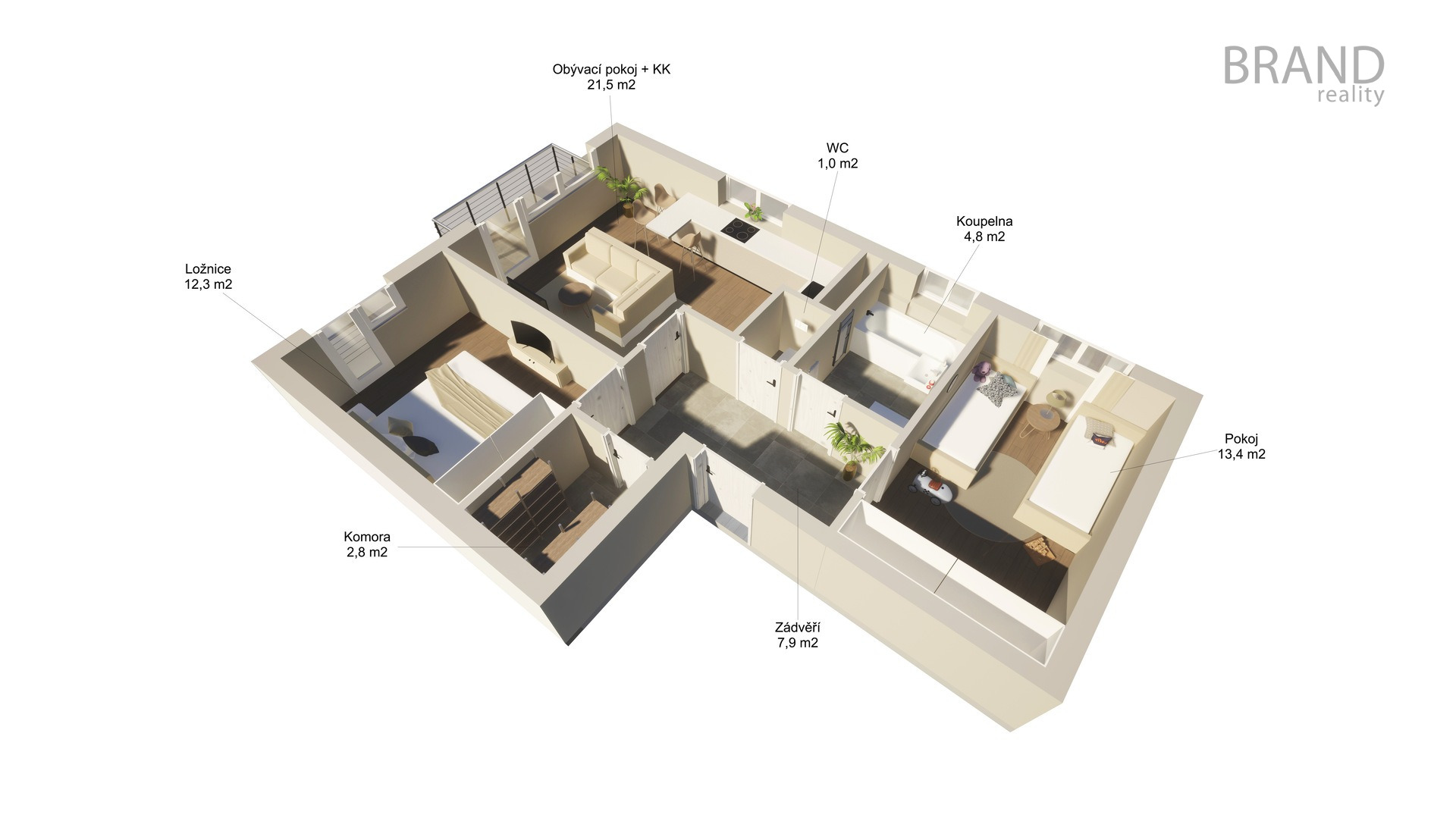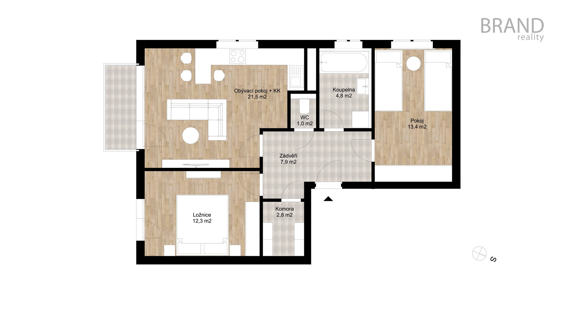 Exklusivně nabízíme k prodeji moderní byt 3+kk o velikosti 73 m² s balkonem, sklepem (10 m²) a parkovacím stáním v 2. NP komorní novostavby z roku 2026 (pouze 4 bytové jednotky).