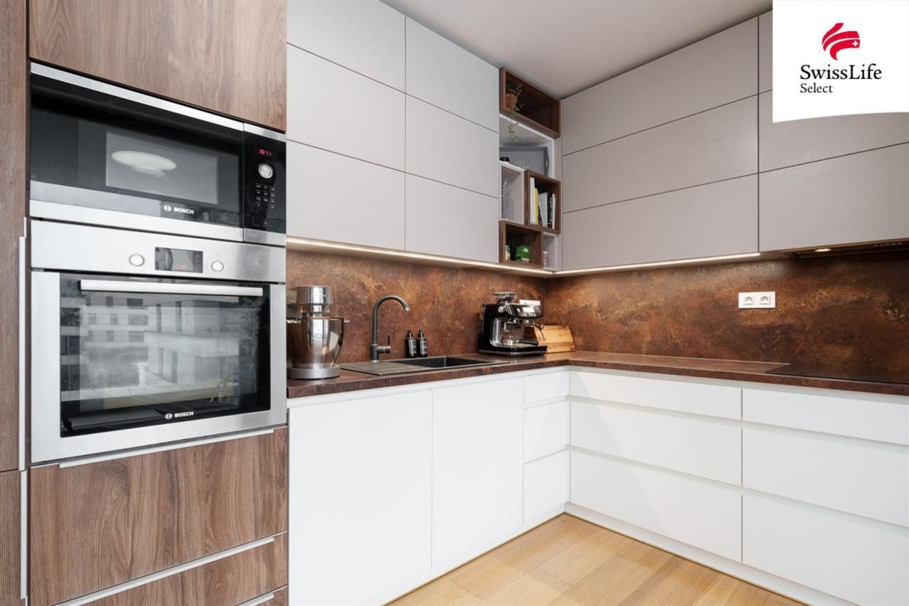 K bytu náleží sklepní kóje pro uložení sezónních věcí a parkovací stání přímo v domě, což je v této lokalitě výrazná výhoda.