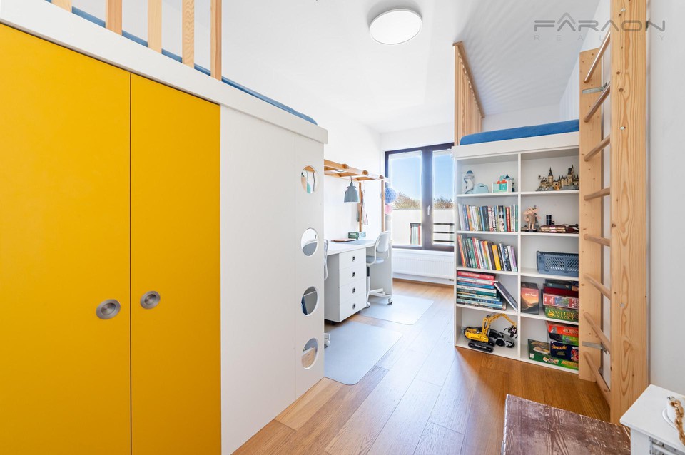 Do standardu vybavení patří kvalitní dřevěné podlahy, dřevěná eurookna, bezpečnostní protipožární vstupní dveře (třídy 3) a centrální vytápění. Vybavení dále zahrnuje vestavěný nábytek na míru, plně vybavenou kuchyňskou linku s kvalitními spotřebiči a kováním BLUM, kompletně řešený dětský pokoj na míru pro 2 děti s dostatkem úložných prostor.