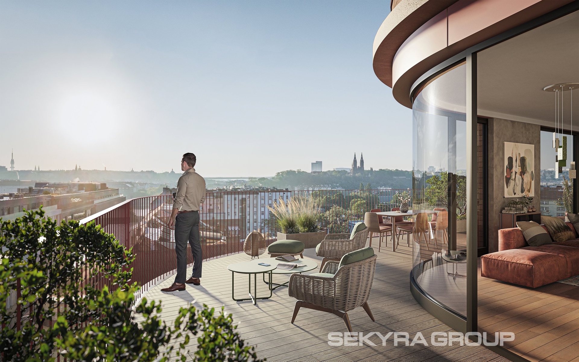 Byty v bloku SM8 jsou navrženy tak, aby si podle svých preferencí a možností mohl vybrat opravdu každý. Dispozičně tu naleznete vše – od malých bytů 1+kk až po velké byty kategorie 5+kk s nádhernými výhledy na Prahu. Samozřejmostí je dostatek parkovacích míst, technické zázemí a sklepní kóje v suterénu objektu. V posledním podlaží jsou pak ty nejexkluzivnější byty, z nichž některé nabízí jedinečný pohled na Vyšehrad. Všechny byty jsou navrženy ve vysokém standardu, což se týká povrchových materiálů i zařízení, jako je podlahové topení či vzduchotechnika s rekuperací vzduchu. Standard bytů lze samozřejmě přizpůsobit potřebám budoucích majitelů. Stačí se obrátit na naše prodejce.