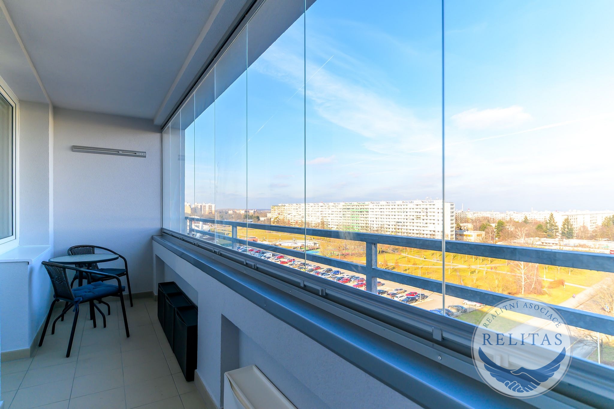 Byt v minulosti prošel kompletní rekonstrukcí, díky které nabízí praktické dispoziční řešení a vkusný interiér. Celková užitná plocha činí 82 m², z čehož podlahová plocha bytu zaujímá 74 m². K jednotce náleží také velkorysá lodžie o rozloze 8 m², která je přístupná z obou ložnic. Díky umístění v desátém patře nabízí lodžie naprosté soukromí a možnost pozorovat krásné východy slunce.
