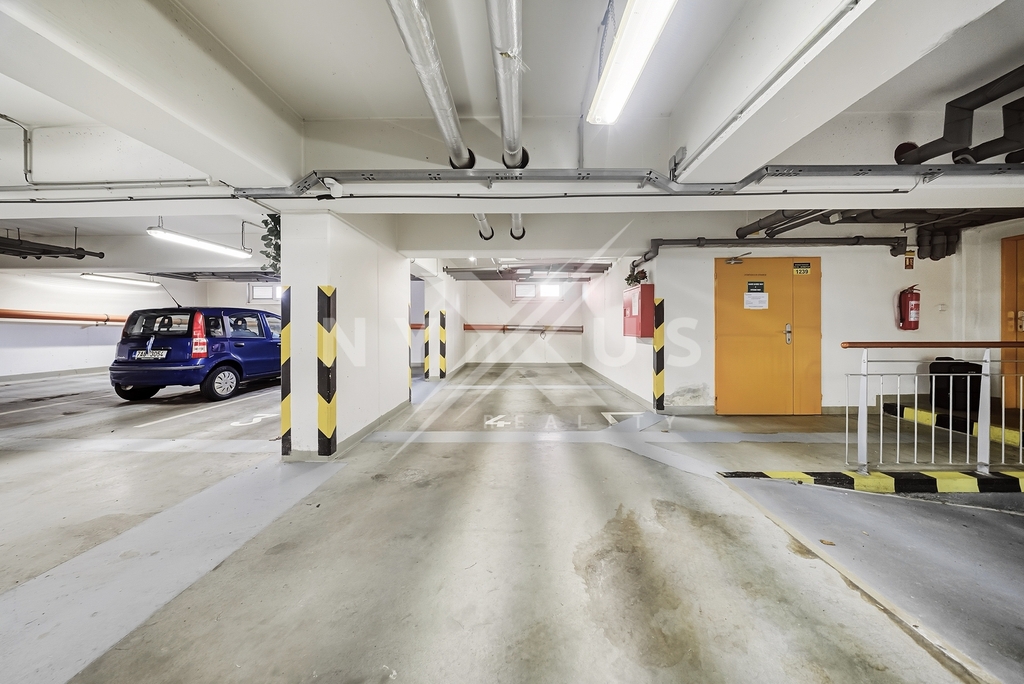K bytu náleží sklep o velikosti 1,6 m² a nadstandardně prostorné garážové stání. Před domem je i dalších 8 sdílených parkovacích míst ve vlastnictví SVJ s uzamykatelnou bariérou. V domě najdete i společnou sušárnu a kočárkárnu (kolárnu).