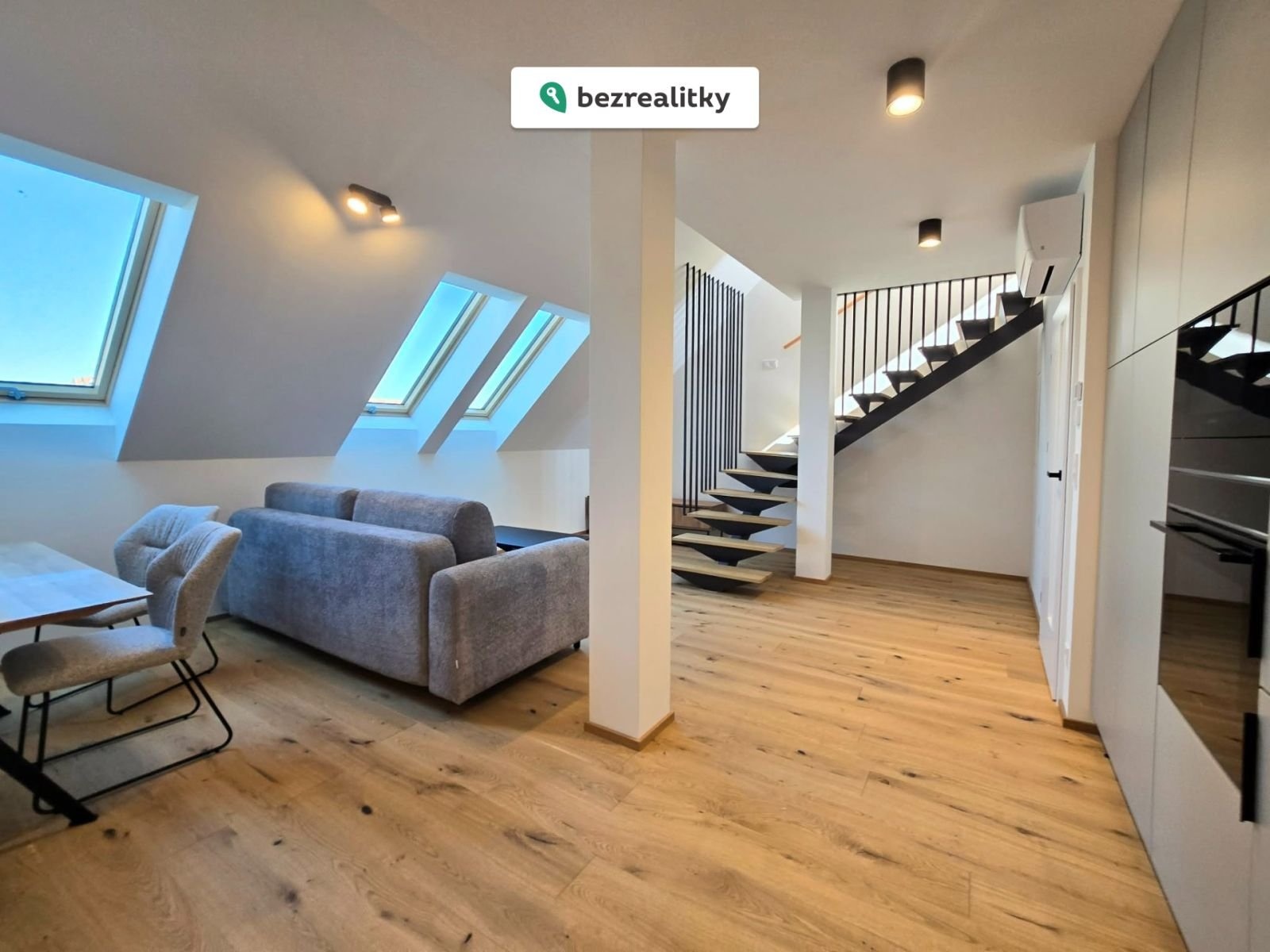 Součástí vybavení bude designová kuchyňská linka na míru s vestavěnými spotřebiči, doplněná pečlivě vybraným nábytkem, který podtrhuje moderní charakter interiéru. Byt bude dále vybaven pračkou a sušičkou, což zajišťuje plný komfort každodenního bydlení.
