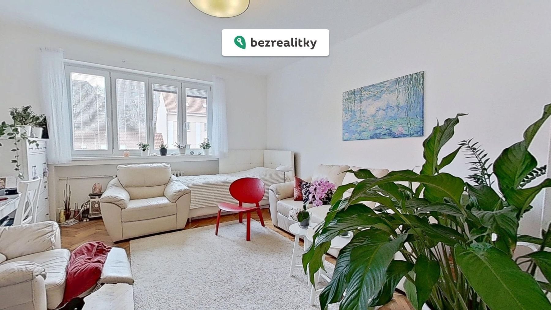 Dva pokoje jsou orientované JZ, s okny do přilehlého parku nabízí hezký panoramatický výhled do volného prostoru, jeden je orientován SZ, kdy okna směřují do ulice Bělohorská. Vstupní dveře jsou čalouněné, zpevněné železnou celoplošnou deskou, jsou zabezpečeny všemi dostupnými ochrannými prostředky.