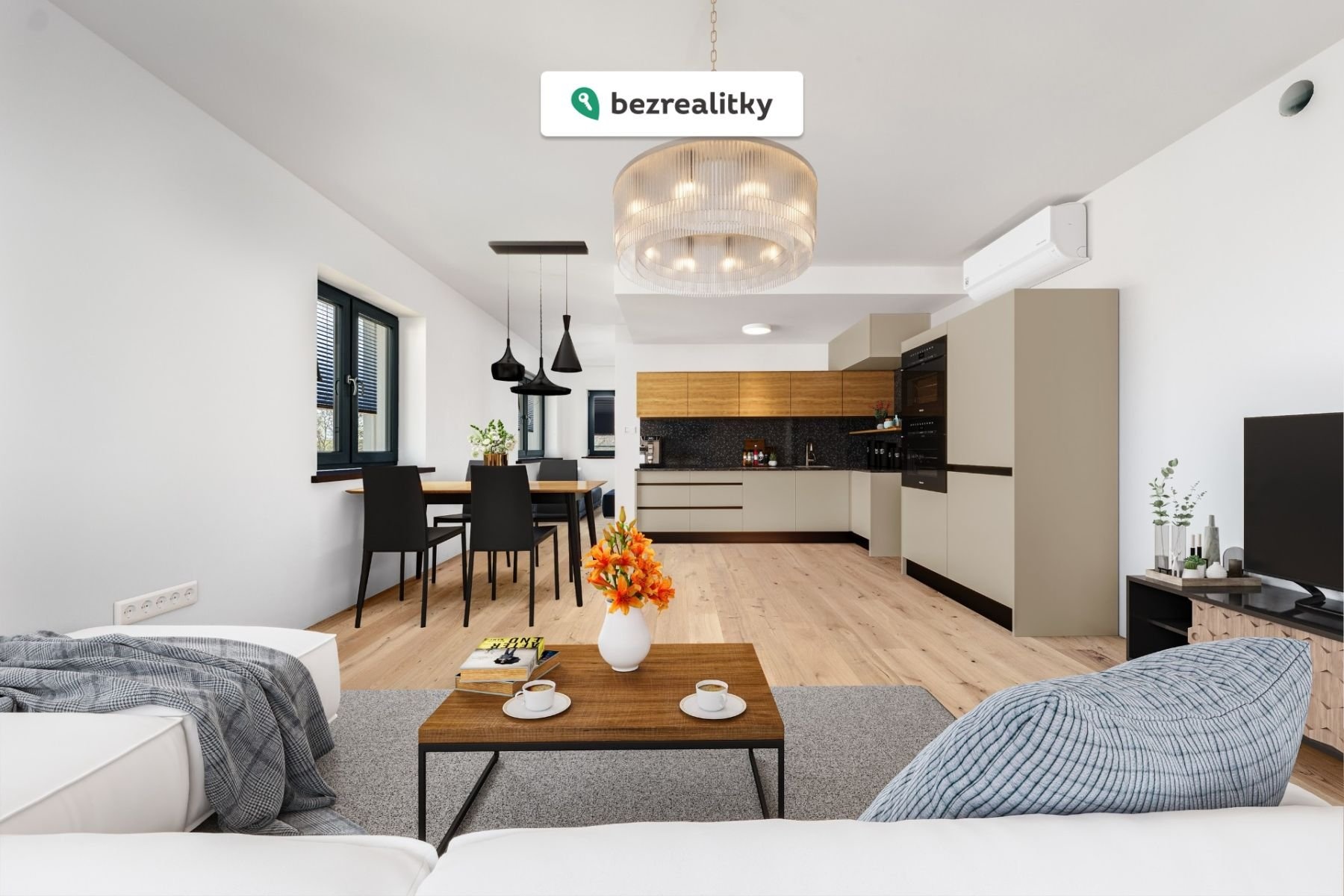 - obývací pokoj s přípravou na kuchyň (návrh Sykora Home)