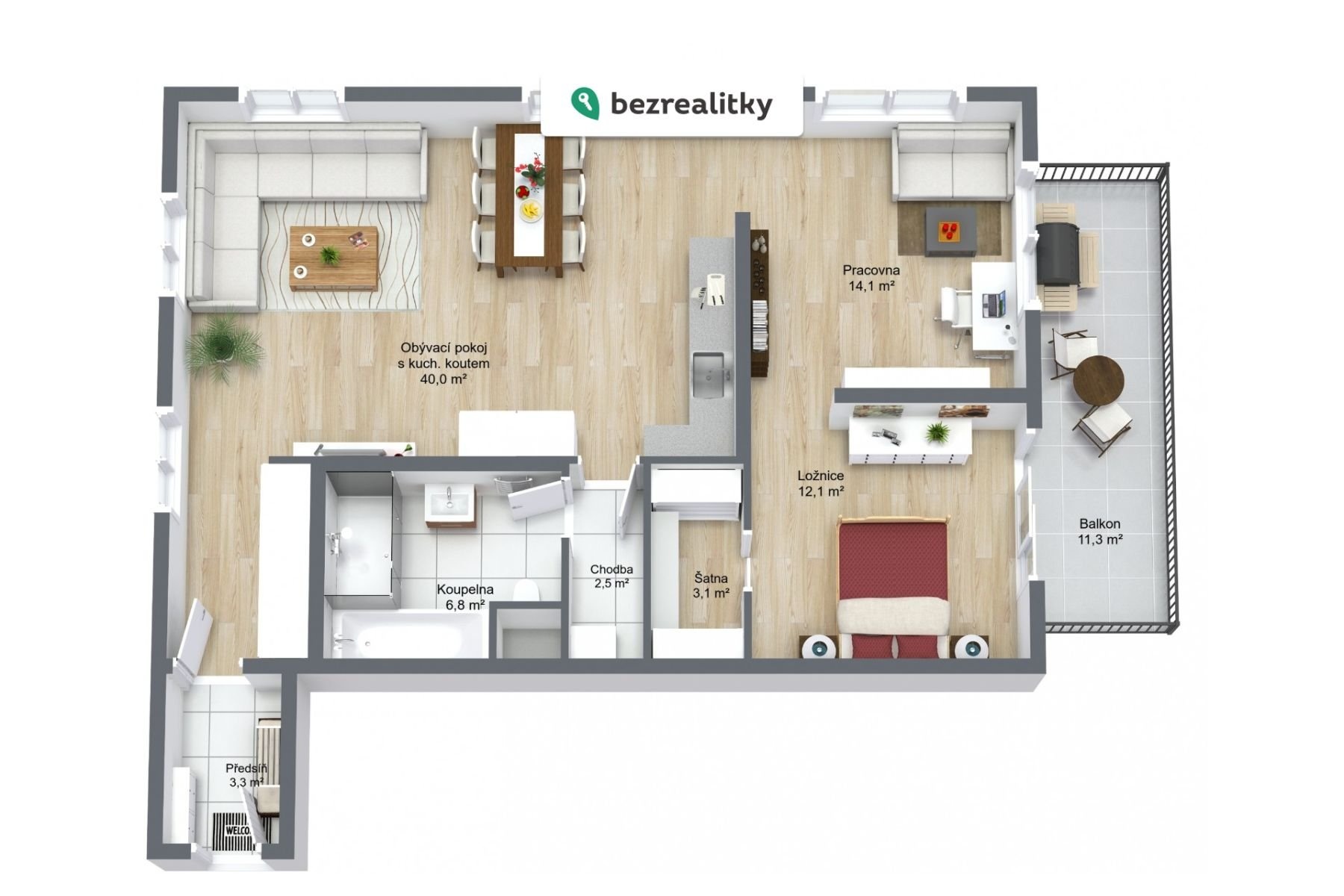 - velký balkón (11 m²)