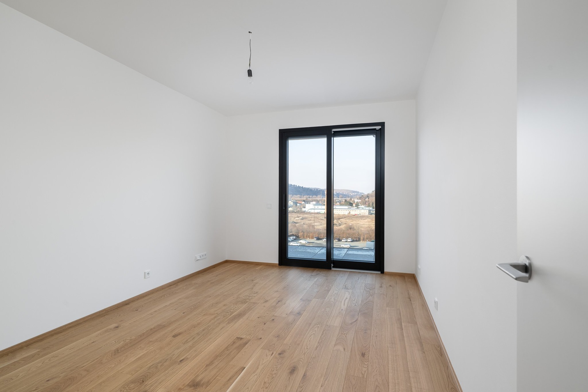 Dispozice zahrnuje prostorný obývací pokoj s přípravou na kuchyňský kout, dvě samostatné ložnice a praktickou komoru, která rozšiřuje úložné možnosti. Nechybí koupelna, samostatné WC a vstupní chodba. K jednotce náleží také prostorný balkon o výměře 19,3 m² a sklepní kóje. Byt je dokončen ve standardu fit out – s hotovými podlahami, sanitou a přípravou pro kuchyň, takže si interiér můžete doladit přesně podle svého stylu. Projekt Ahoj, Vanguard nabízí prvky, které posouvají bydlení na novou úroveň: posuvná velkoformátová okna, podlahové vytápění, rekuperace, chlazení i úsporné technologie v podobě tepelných čerpadel a fotovoltaiky. A když budete chtít vydechnout, stačí vyjet na střešní terasu s panoramatickými výhledy na město – dokonalé místo pro relax i inspiraci.