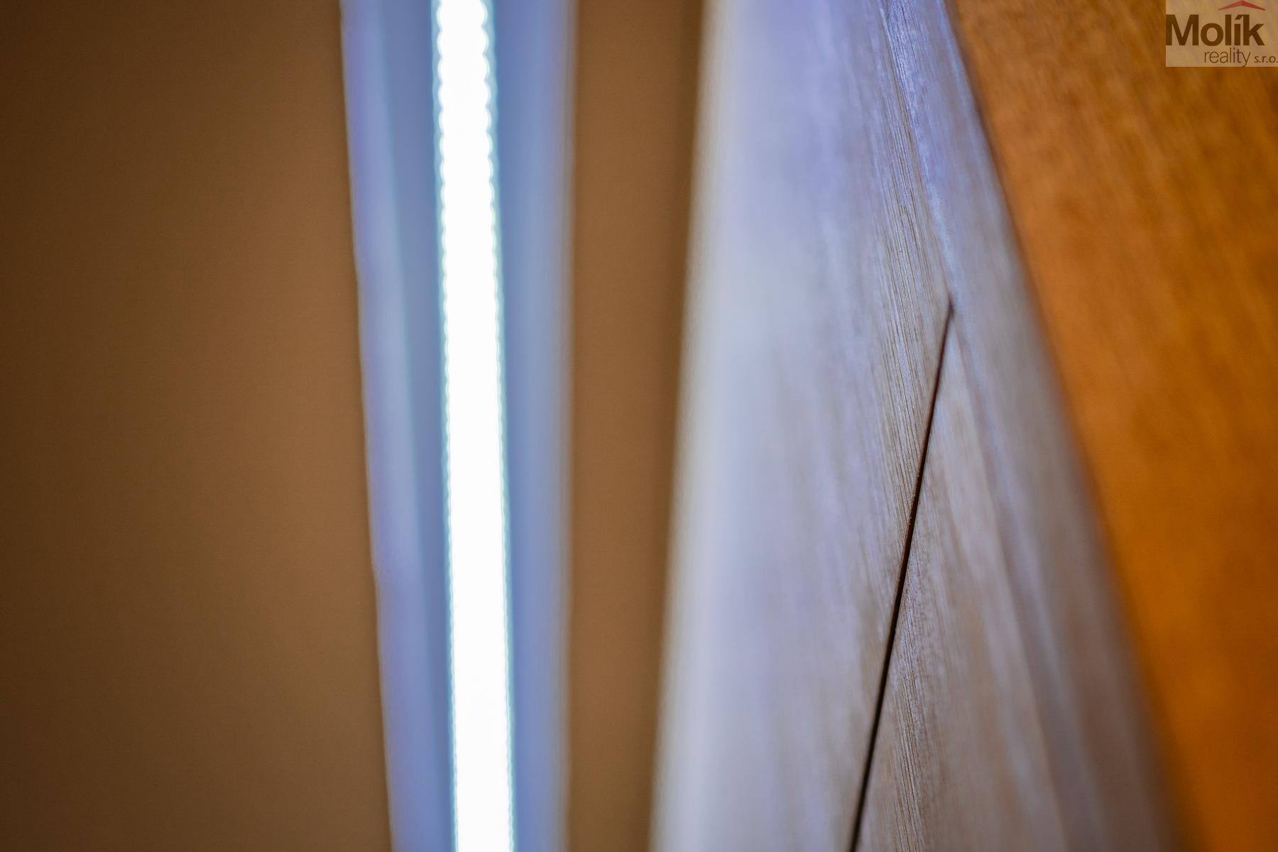 Byt prošel kompletní a kvalitní rekonstrukcí, včetně nových podlah, elektroinstalace a vybavení. K dispozici je mnoho úložného prostoru díky vestavěného nábytku na míru. Moderní kuchyňská linka s vestavěnými elektrospotřebiči, včetně vestavěné vinotéky. Podlahová krytina je dřevěná, vytápění zajišťuje vlastní elektrický kotel.