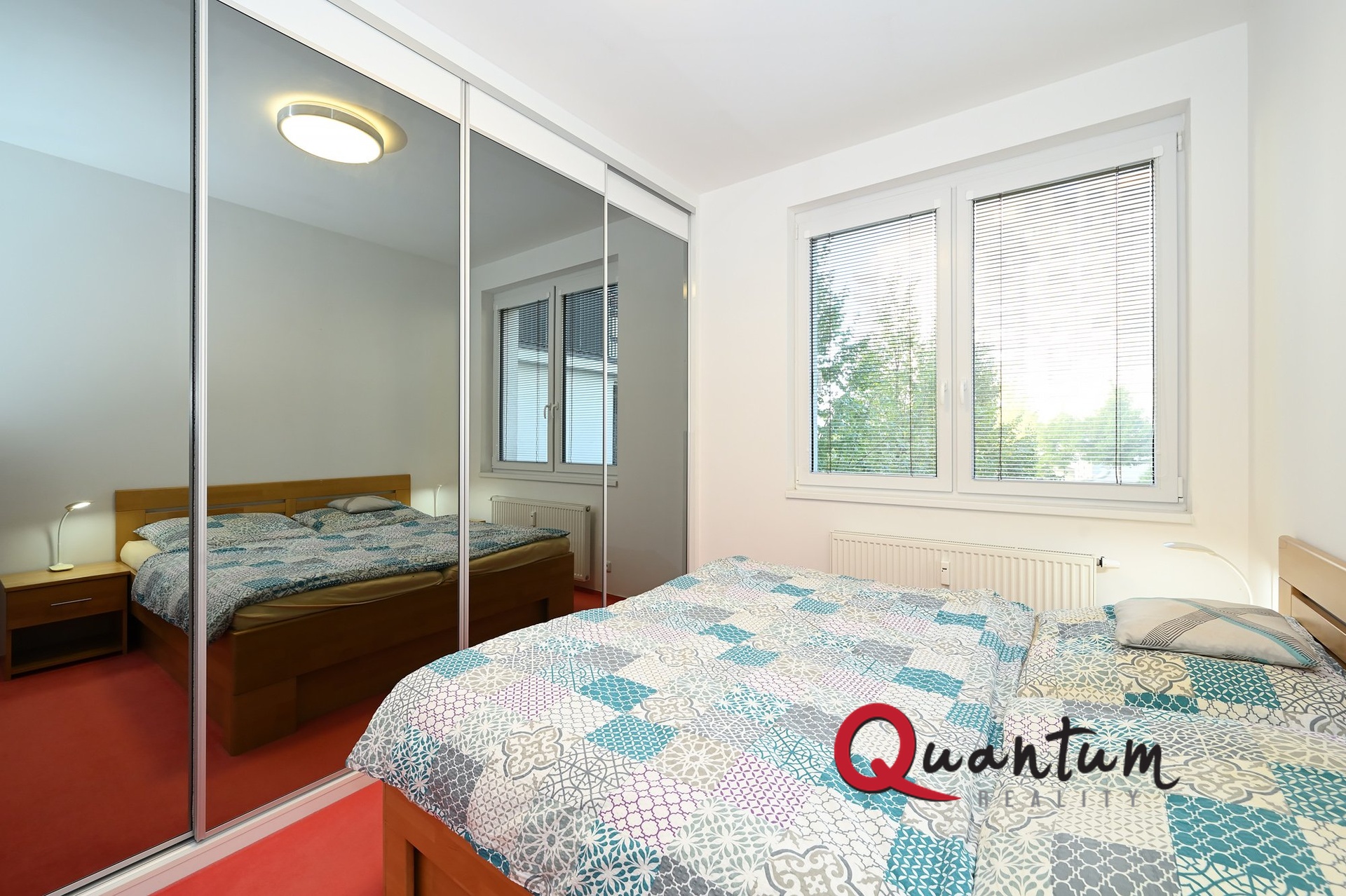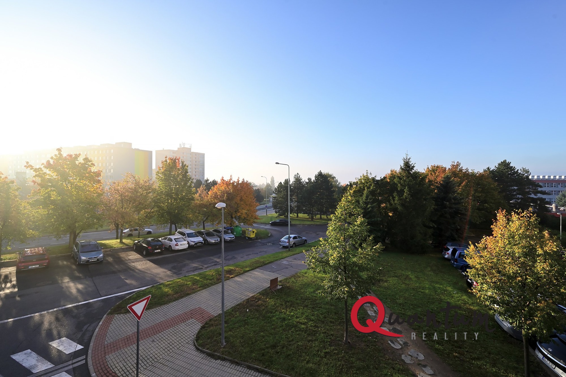 Jedná se o byt s neprůchozími pokoji, komorou 3 m2 a garážovým stáním. V obývacím pokoji orientovaném na jih a západ je kvalitní kuchyňská linka s vestavěnými spotřebiči – sklokeramická varná deska, elektrická a mikrovlnná trouba, lednice s mrazákem a myčka a výstup na velmi dobře využitelný čtvercový balkón 11 m2. Ložnice, kde je prostorná vestavěná skřín a dětský pokoj jsou orientovány na západ. V koupelně je vana se zástěnou, WC samostatně, na chodbě je věšáková stěna. V bytě je i praktická komora – šatna, hned u vstupu. Podlahy jsou vinylové a dlažba, v pokojích koberce, dveře jsou s obložkovými zárubněmi a okna plastová se žaluziemi. Vytápění je ústřední, dálkové, stejně tak i ohřev teplé vody. Součástí prodeje je i garážové stání v suterénu objektu.