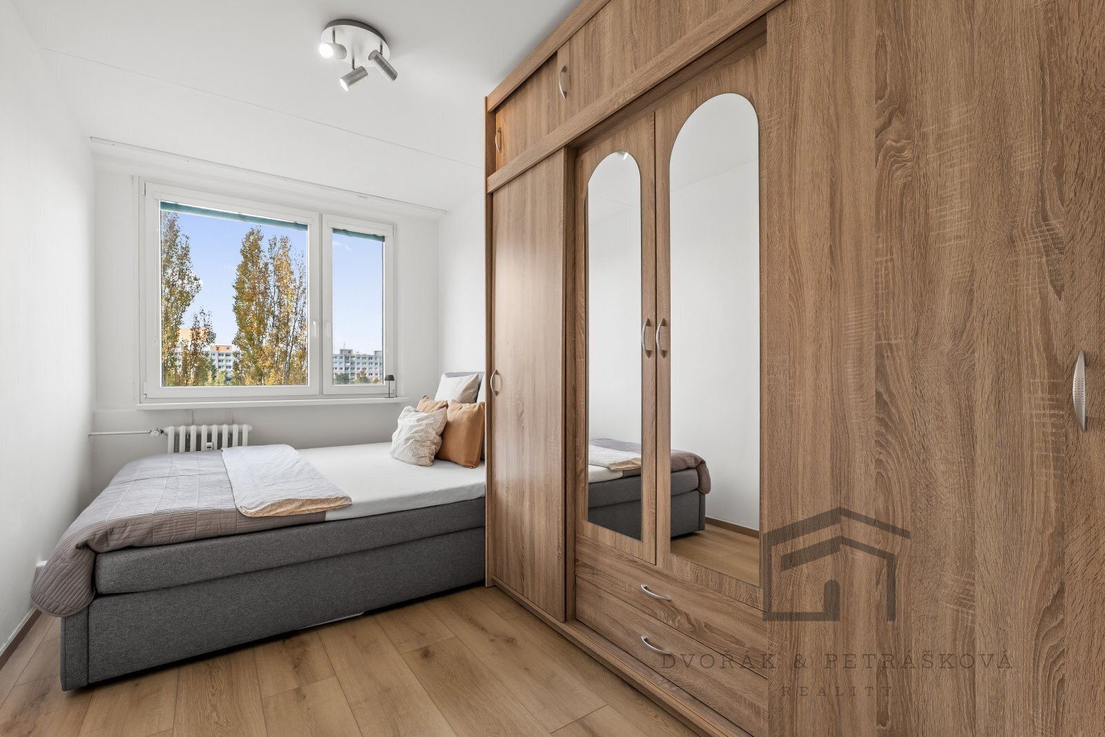 Dále ložnice, kam se vejde velká manželská postel a šatní skříň.