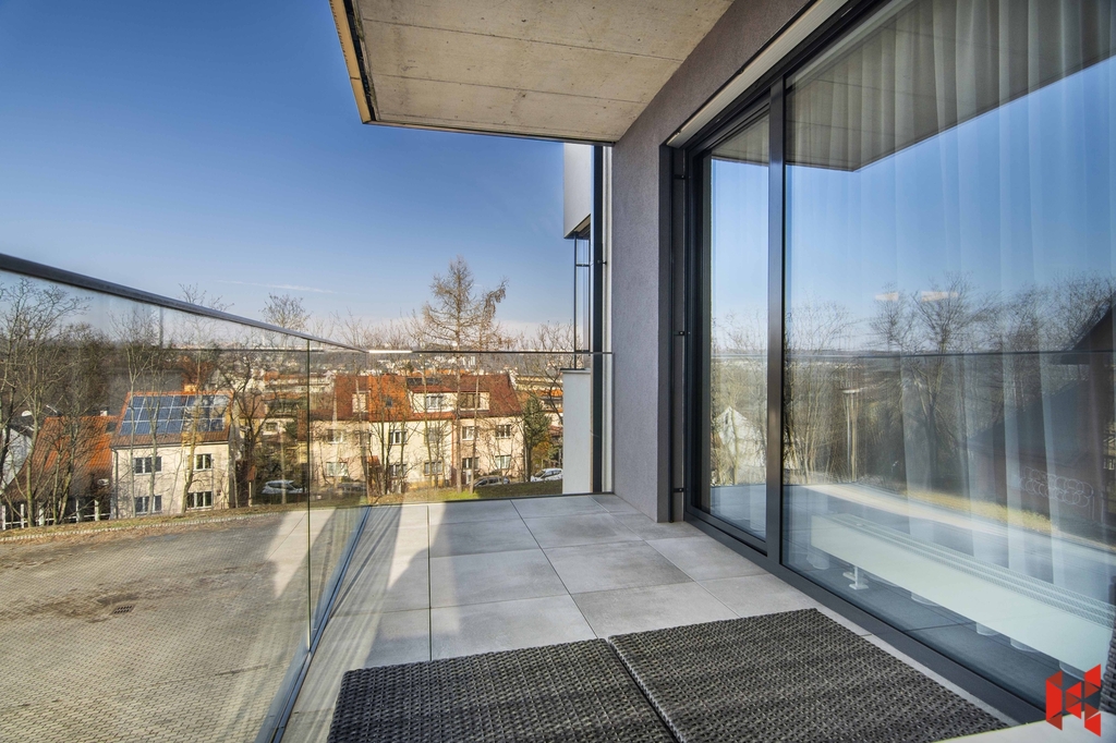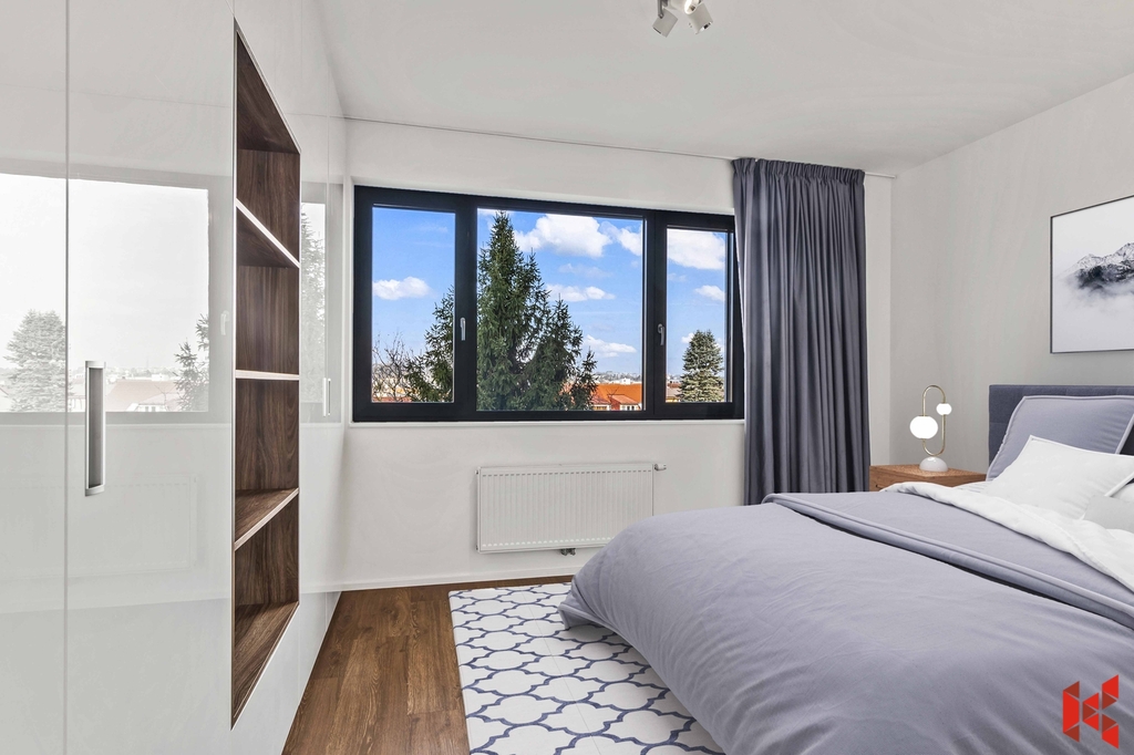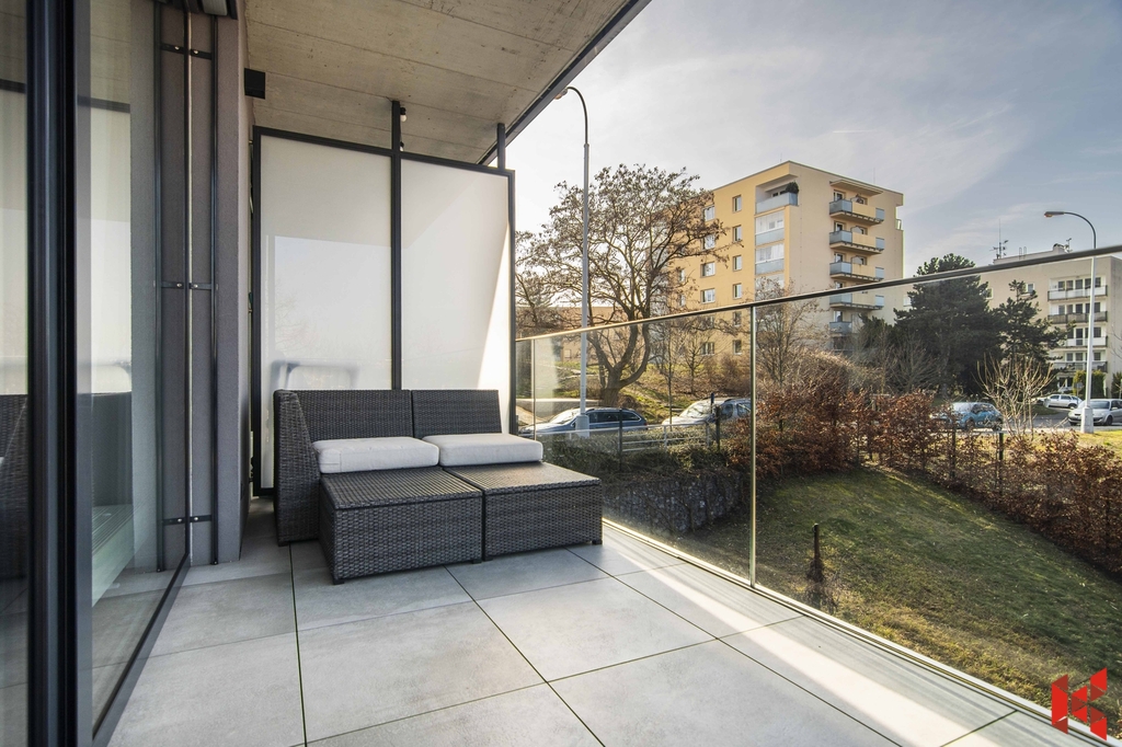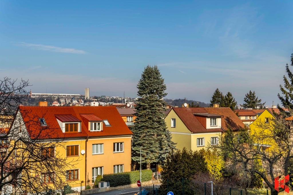 ✔ Orientace na západ (kuchyně, balkon a obývací pokoj) a na sever do údolí Smíchova (ložnice)