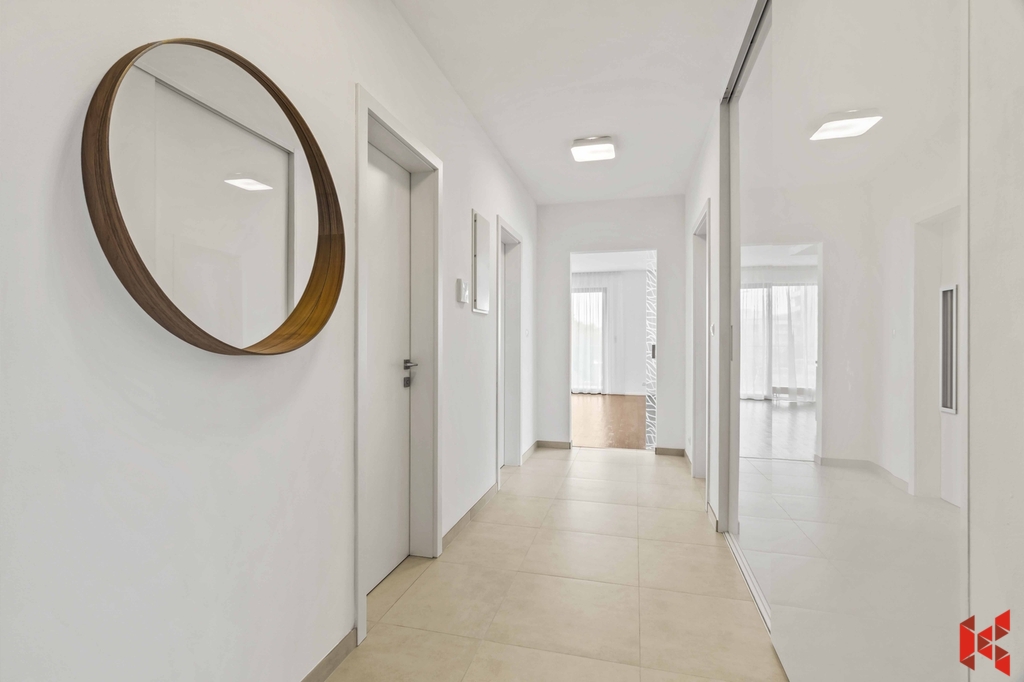 ✔ Dispozice 3+kk s praktickým uspořádáním centrální haly s hlubokou vestavěnou skříní