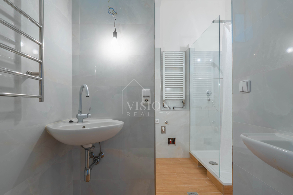 Díky světlé výšce stropů 3,1 m nabízí byt další možnosti pro vytvoření úložných prostor, například v předsíni. Vstupní dveře jsou bezpečnostní, interiérové dveře osazeny do obložkových zárubní. Balkónové dveře a okno jsou plastová, ostatní okna původní dřevěná špaletová. Vytápění zajišťují kvalitní litinové radiátory, plyn je do domu zaveden a lze jej využít v kuchyni.