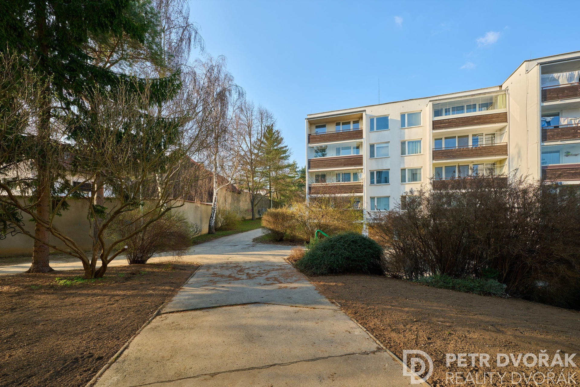 Lodžie o velikosti 6,9 m² s prosklením a deskami Fundermax je orientována do klidného zeleného dvorního prostoru. Plynová přípojka umožňuje přechod na samostatné vytápění nebo přípravu teplé vody.