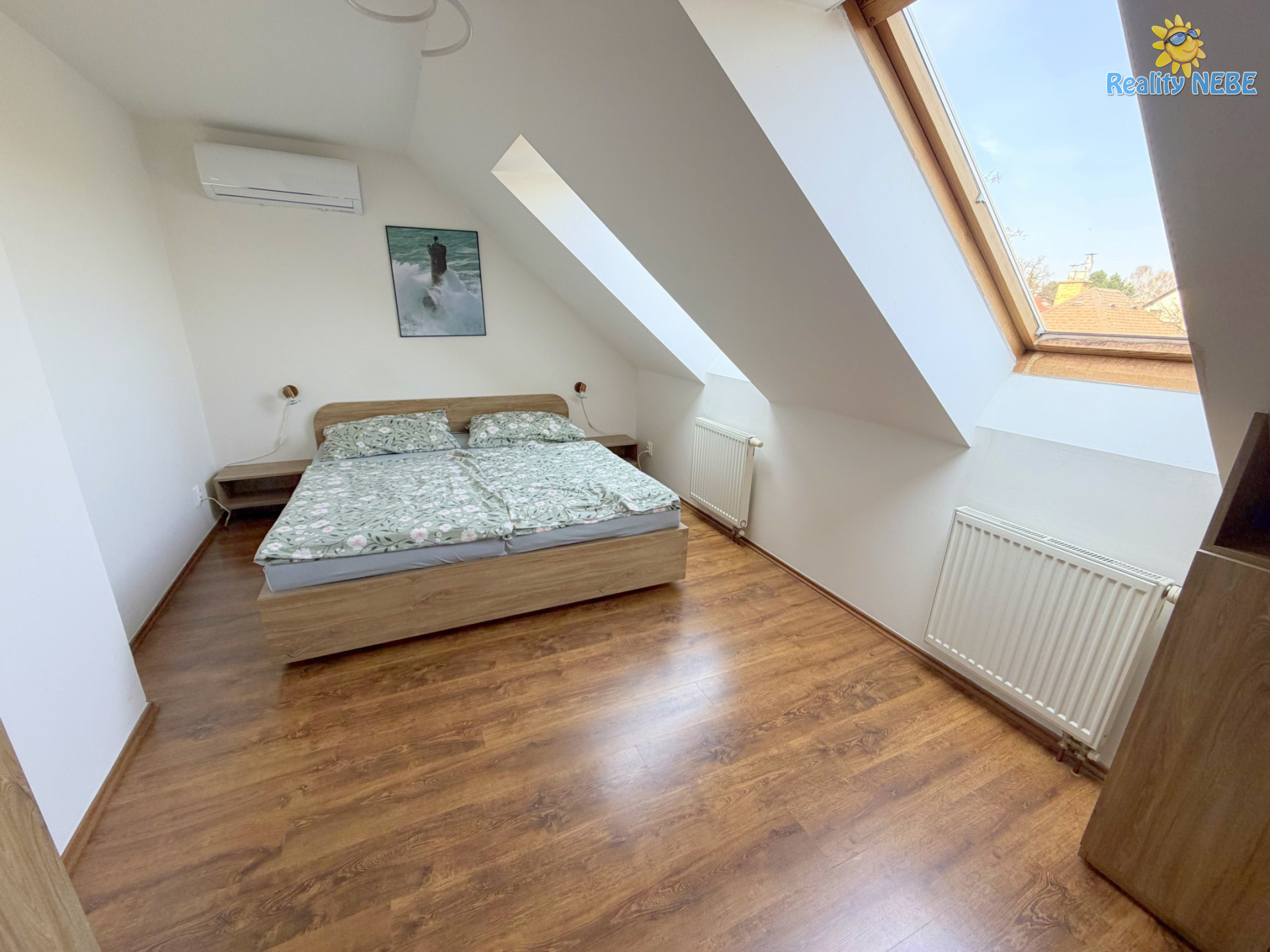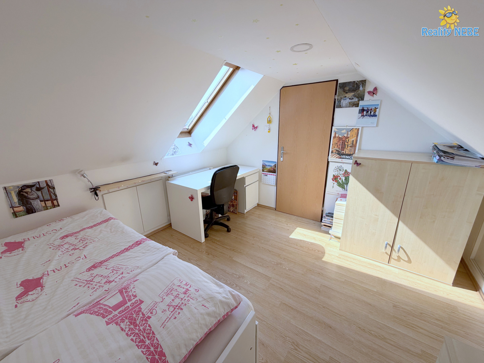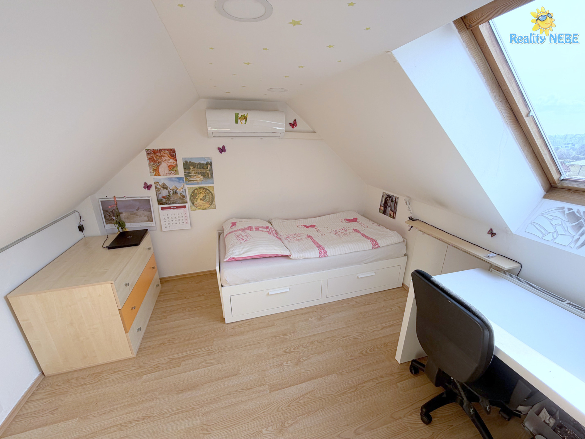 Nabízíme k prodeji bytovou jednotku v osobním vlastnictví o velikosti 110m2 a dispozici 4+1 ve 2.patře (3/3NP) cihlového domu v klidné části Prahy - Březiněvěs. Byt vznikl jako půdní vestavba, skládá se tak ze dvou podlaží propojených schodištěm. Ve 3NP se nachází jedna ložnice, obývací pokoj s pracovním koutem, samostatná, plně zařízená kuchyně, koupelna a samostatné WC. Po dřevěném schodišti ve 4NP jsou dva samostatné pokoje a WC s umývadlem. Vytápění a ohřev TUV je vlastním plynovým kotlem, ve všech obytných pokojích je zavedena klimatizace. K bytu náleží velký sklep 15m2 a společná sušárna. K užívání je také zahrada kolem domu, kde má každý byt vymezeno cca 100m soukromého prostoru a kde se také nachází dostatek parkovacích míst.