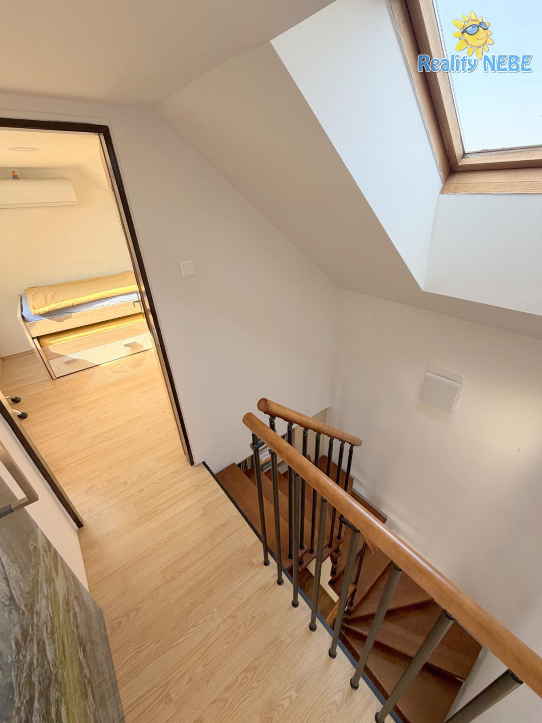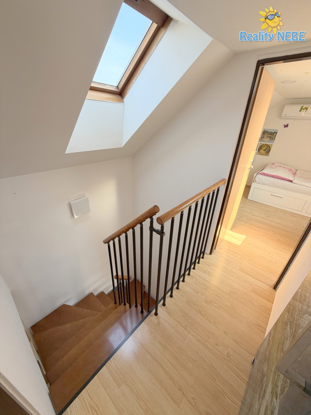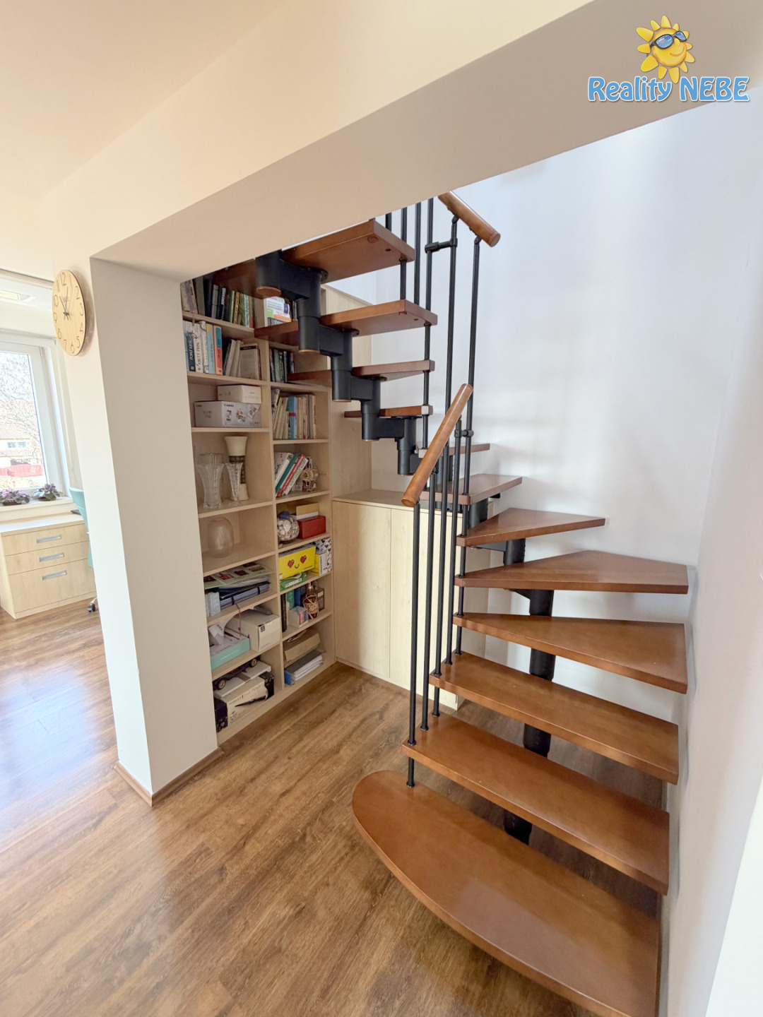 Nabízíme k prodeji bytovou jednotku v osobním vlastnictví o velikosti 110m2 a dispozici 4+1 ve 2.patře (3/3NP) cihlového domu v klidné části Prahy - Březiněvěs. Byt vznikl jako půdní vestavba, skládá se tak ze dvou podlaží propojených schodištěm. Ve 3NP se nachází jedna ložnice, obývací pokoj s pracovním koutem, samostatná, plně zařízená kuchyně, koupelna a samostatné WC. Po dřevěném schodišti ve 4NP jsou dva samostatné pokoje a WC s umývadlem. Vytápění a ohřev TUV je vlastním plynovým kotlem, ve všech obytných pokojích je zavedena klimatizace. K bytu náleží velký sklep 15m2 a společná sušárna. K užívání je také zahrada kolem domu, kde má každý byt vymezeno cca 100m soukromého prostoru a kde se také nachází dostatek parkovacích míst.